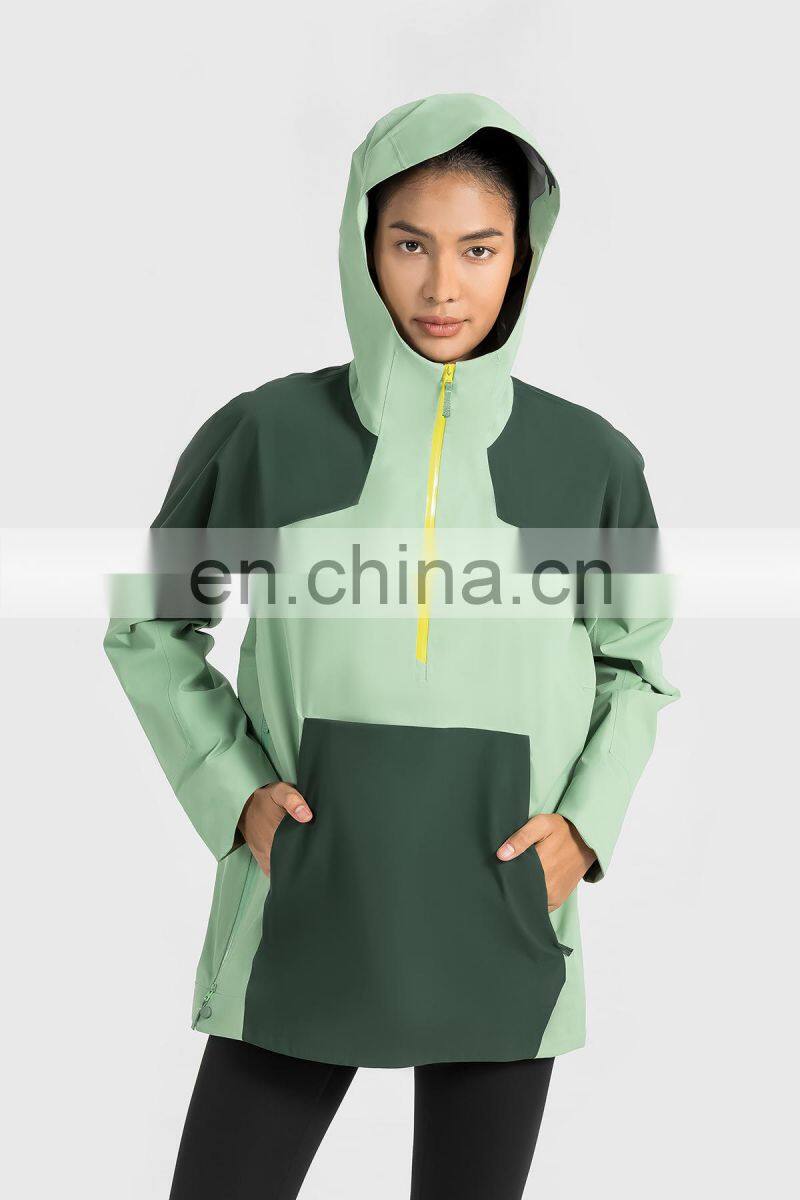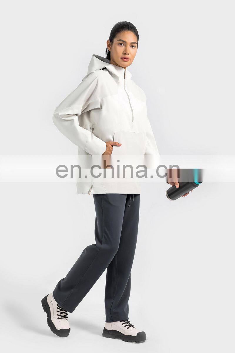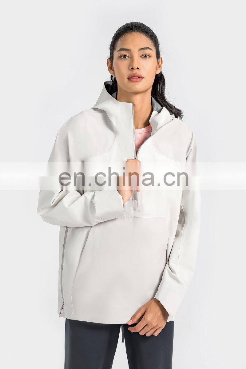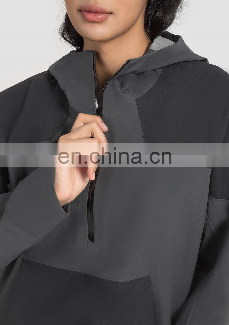 High Quality Women Half Zip Front Pocket Hooded Jackets Windbreaker Waterproof Gym Clothing Outdoor Running Hiking Pullover Tops