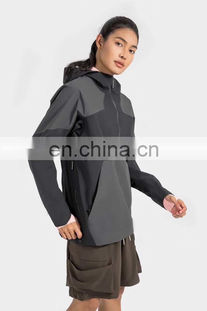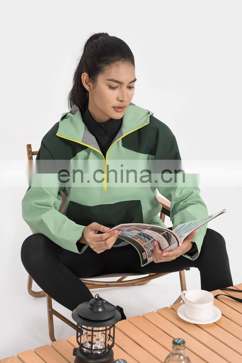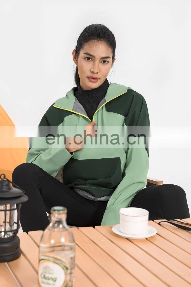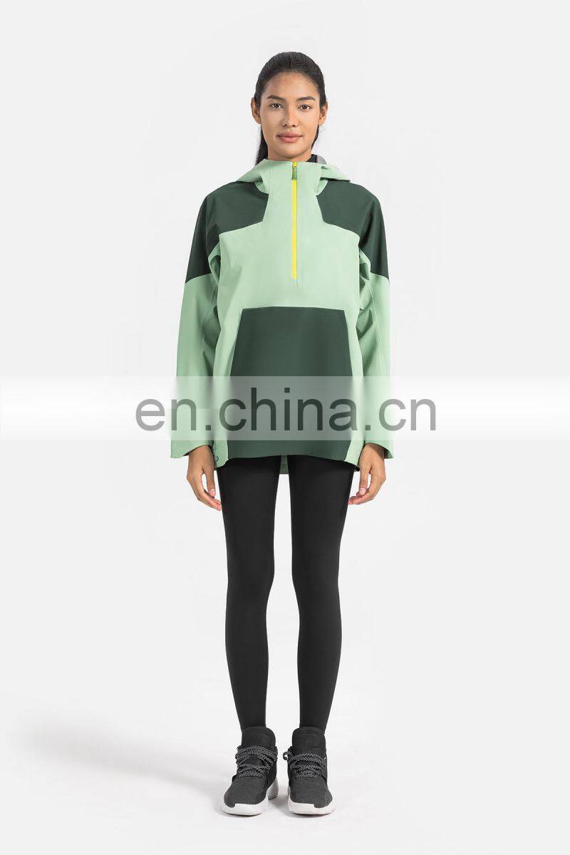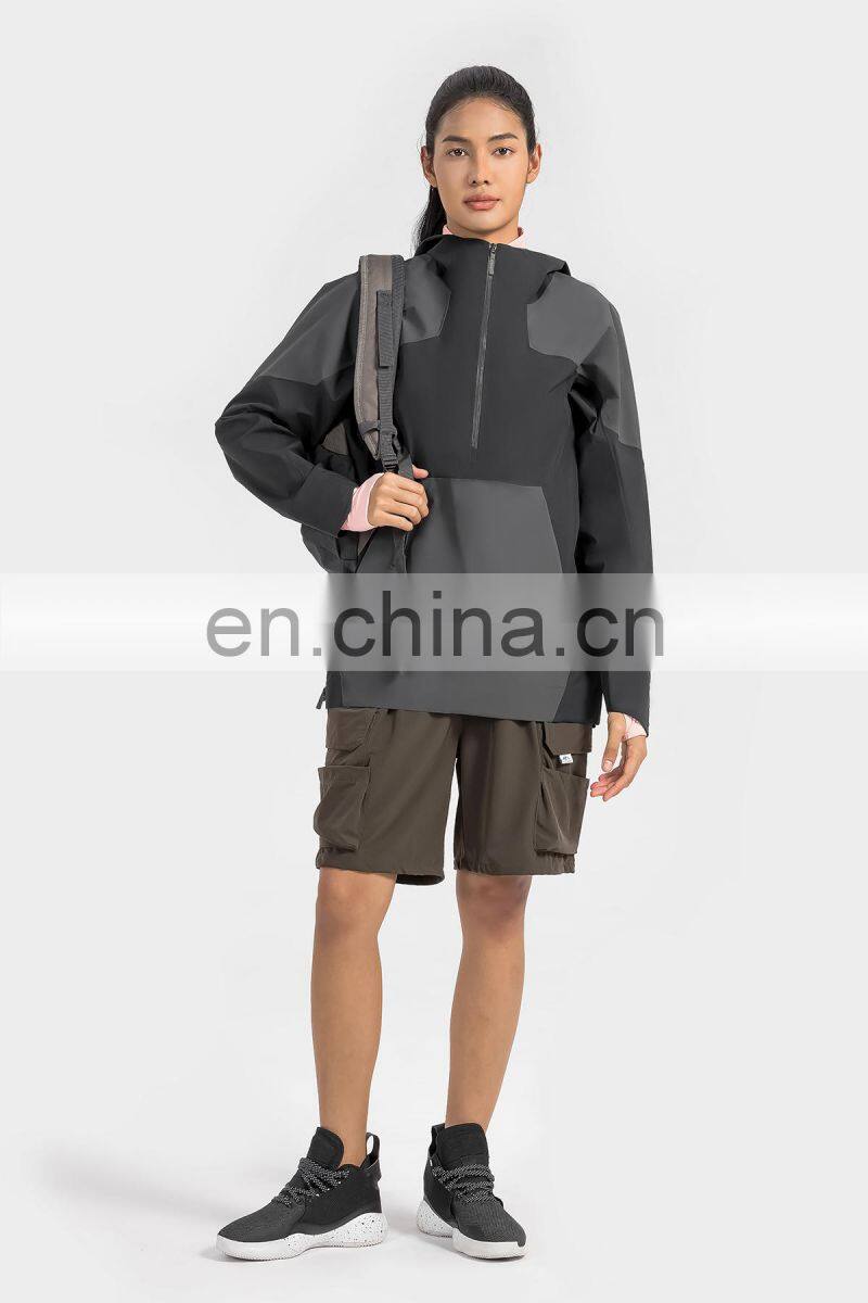 High Quality Women Half Zip Front Pocket Hooded Jackets Windbreaker Waterproof Gym Clothing Outdoor Running Hiking Pullover Tops