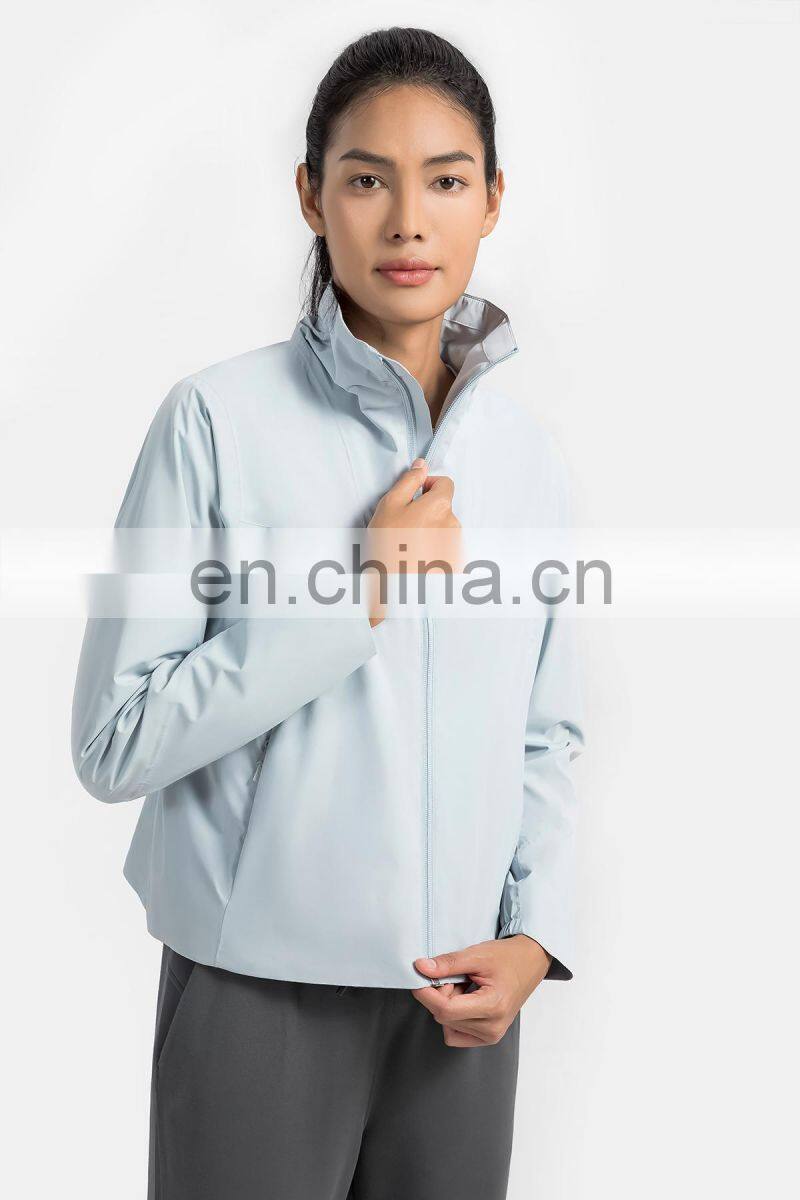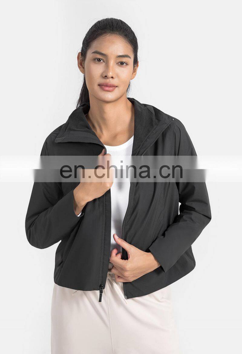 Custom Women Clothing Stand Up Collar Full Zip Drawstring Sports Tops Long Sleeve Gym Fitness Short Jackets Women Yoga Jacket