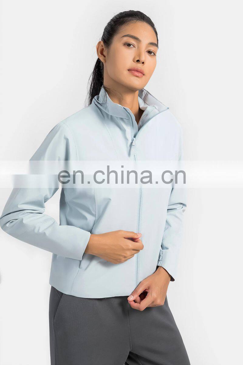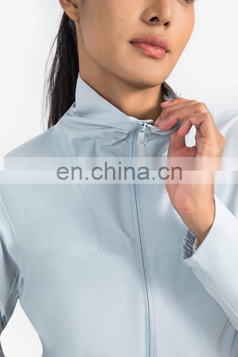 Custom Long Sleeve Zipper Hooded Jacket Women Softshell Windbreaker Waterproof Sports Jackets Activewear Gym Fitness Yoga Coats