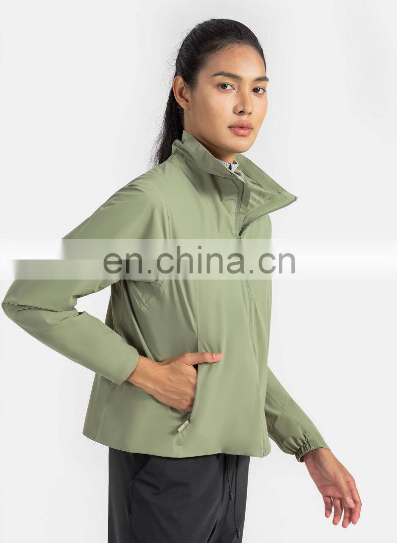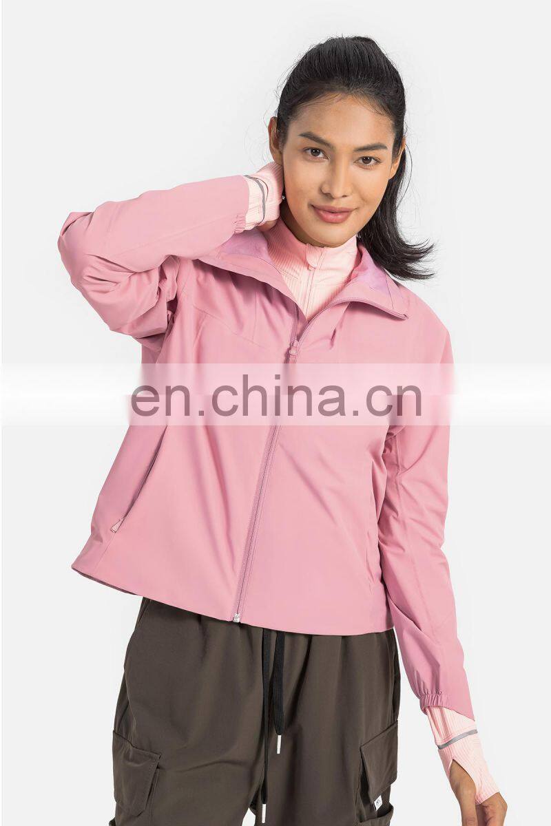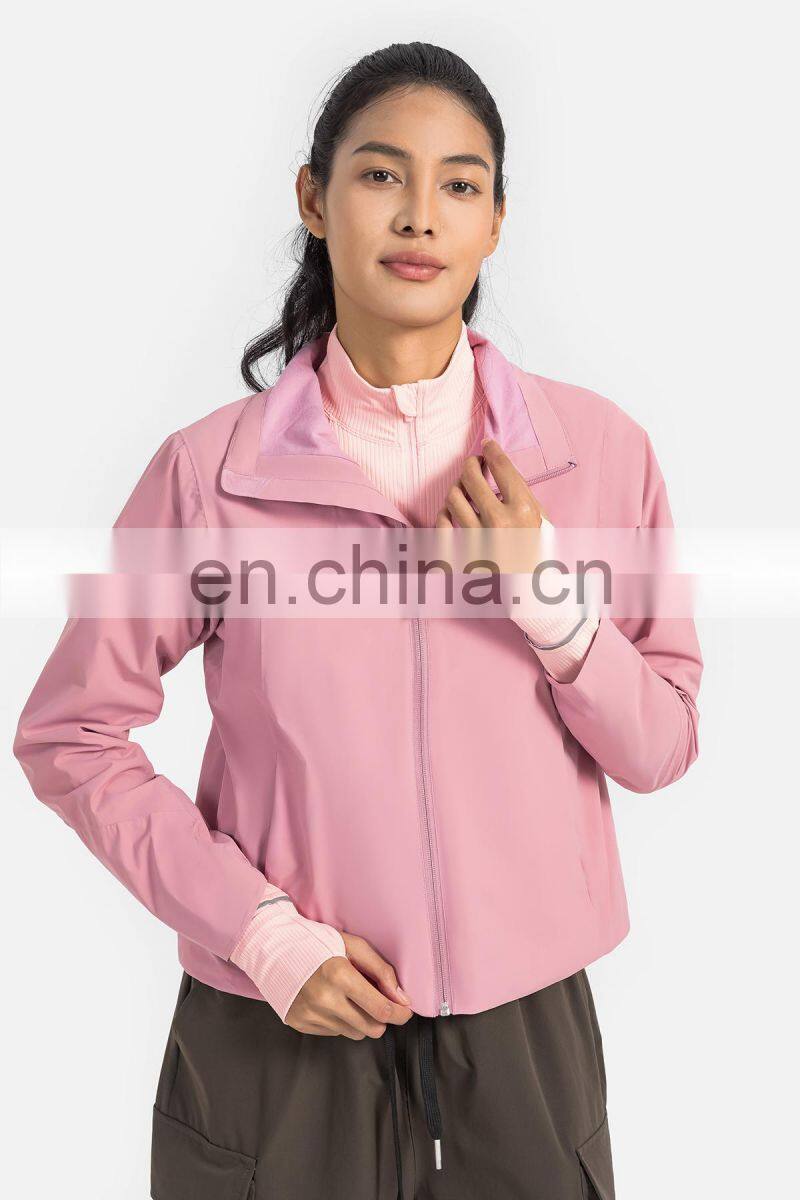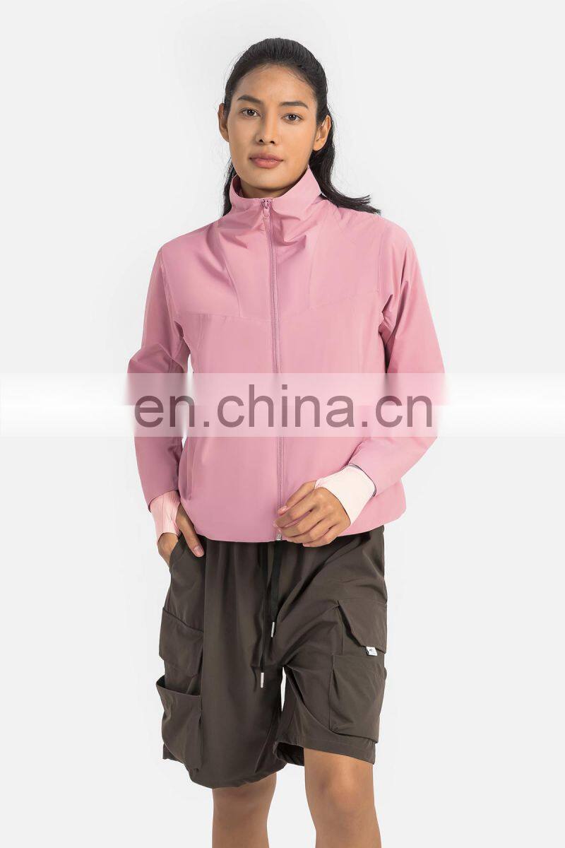 Custom Running Workout Sports Tops Wear Gym Fitness Stand Collar Long Sleeve Thumb Hole Zipper Jackets Yoga Jacket For Women