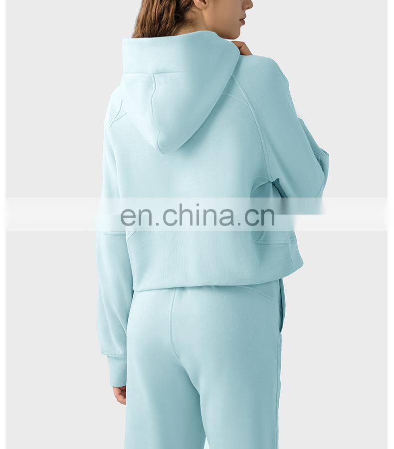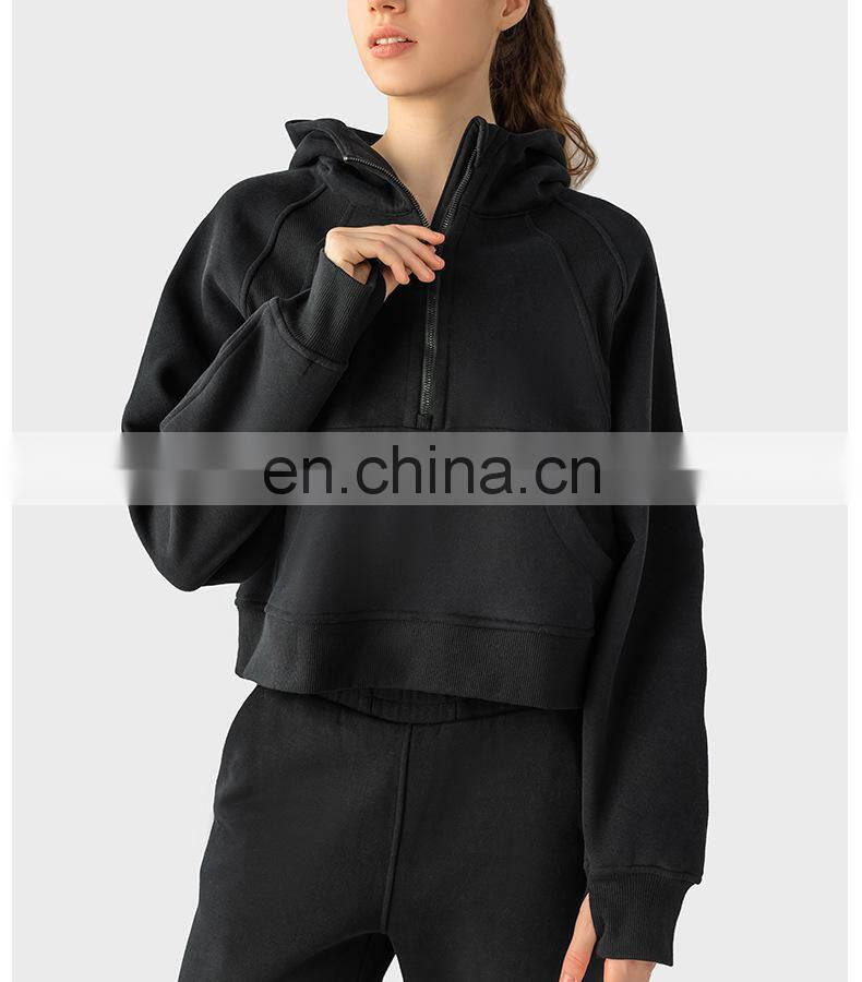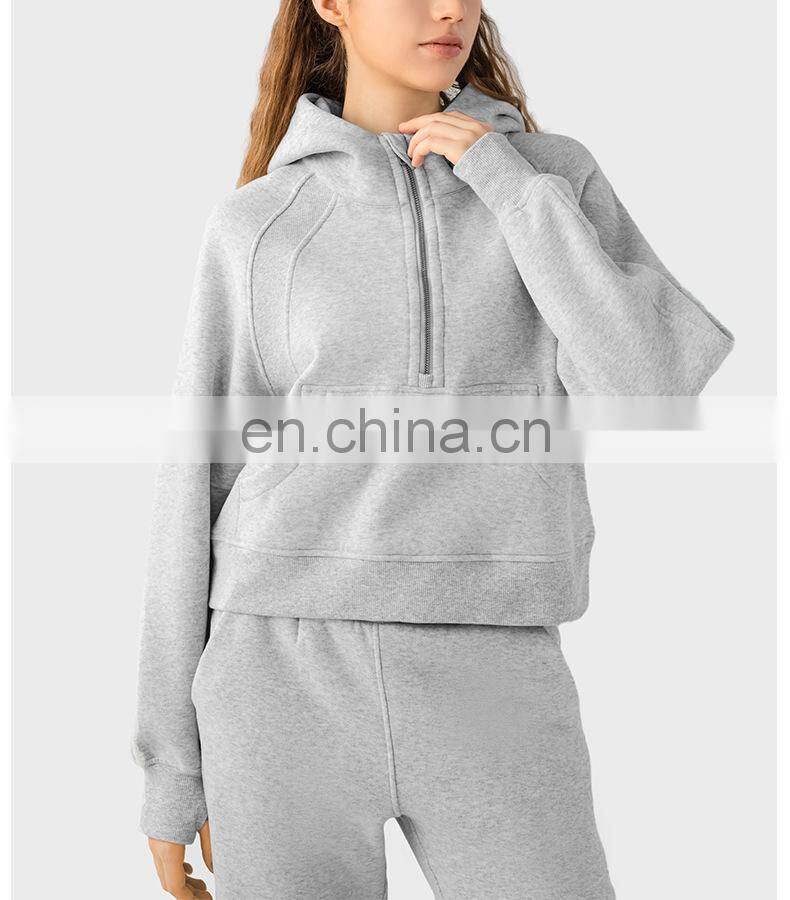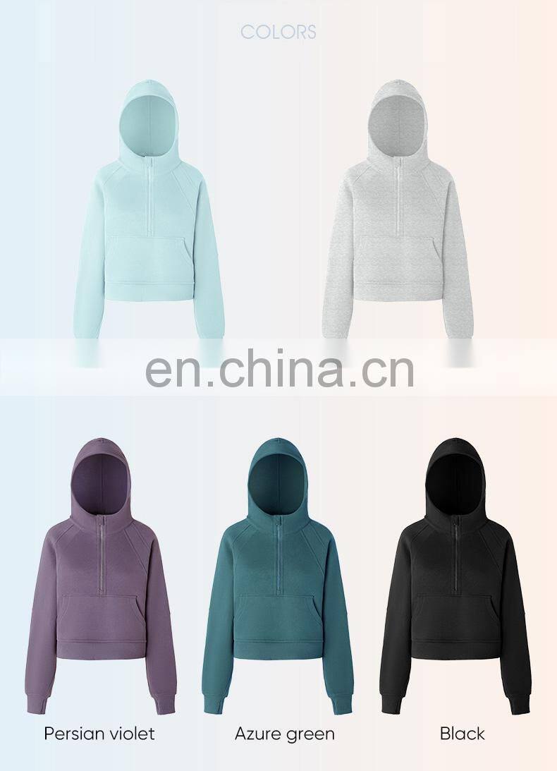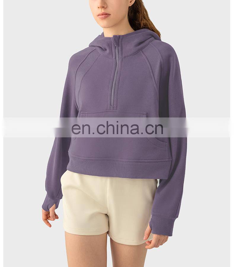 Loose Pullover Tops Custom Gym Fitness Sweatshirts Sports Jacket Long Sleeve Yoga Top Women Half-Zip Wamth Hoodies Sweatshirt