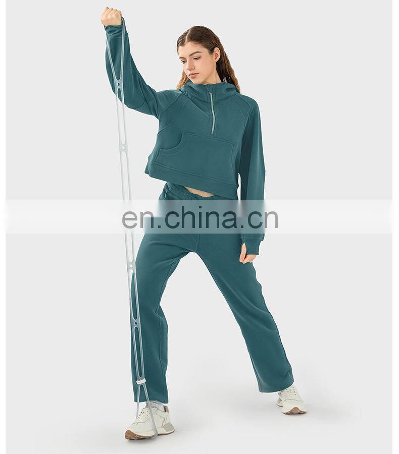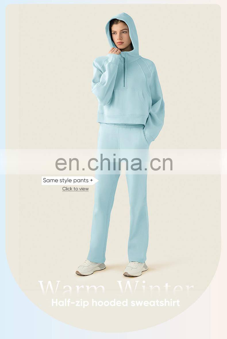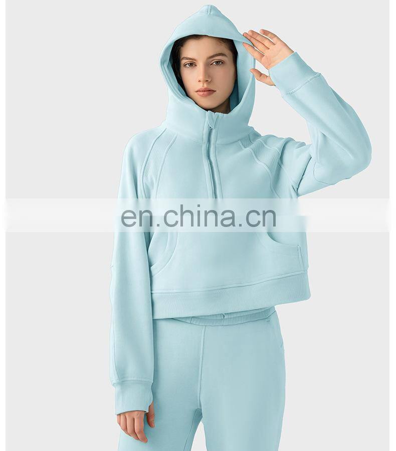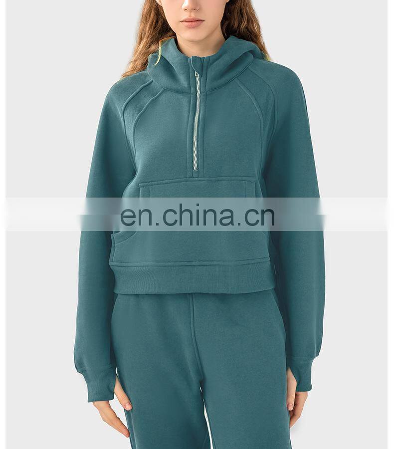 Loose Pullover Tops Custom Gym Fitness Sweatshirts Sports Jacket Long Sleeve Yoga Top Women Half-Zip Wamth Hoodies Sweatshirt