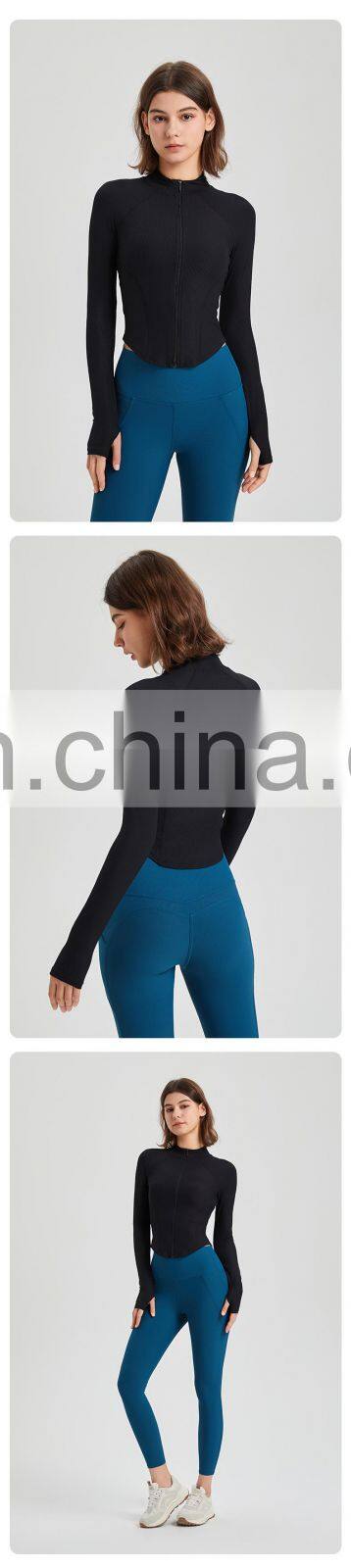 Womens Slim Fit Sports Running Jackets Long Sleeve Thumb Hole Fitness Tops Small Stand-up Collar Zipper Yoga Jacket For Women