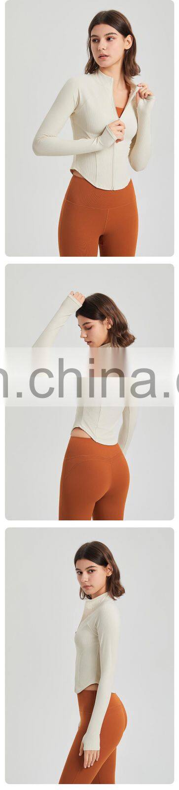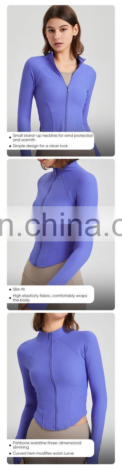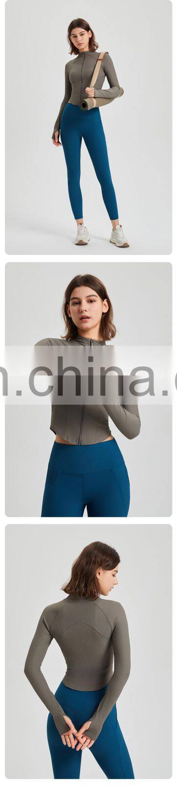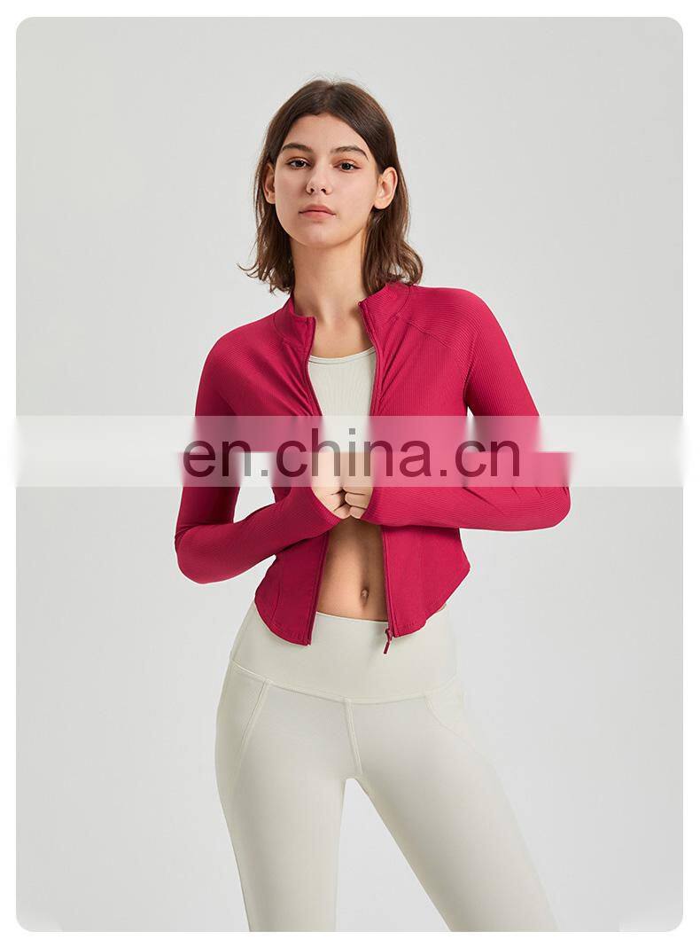 Custom Workout Wear Double Head Zipper Stand Collar Sports Coat Gym Fitness Tops Long Sleeve Ribbed Short Yoga Jacket For Women