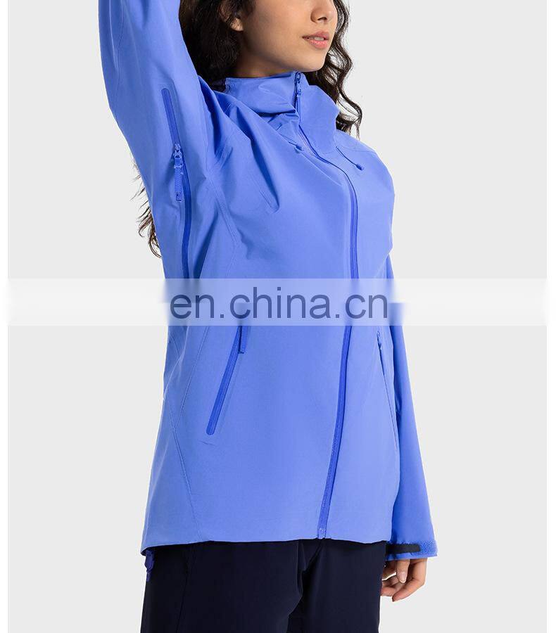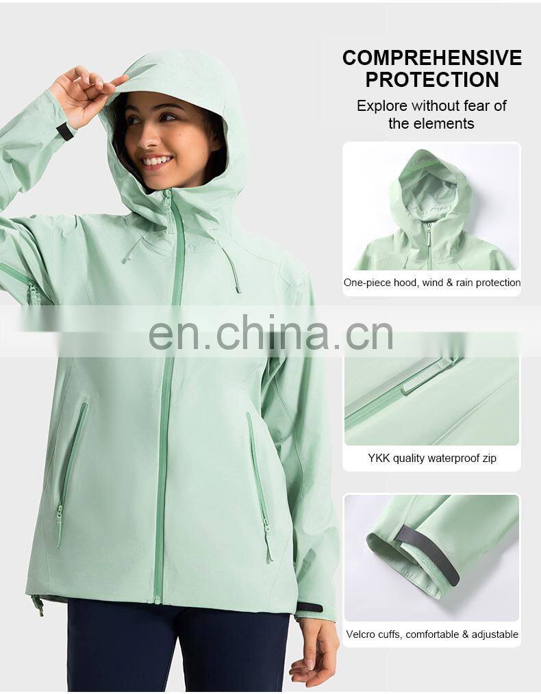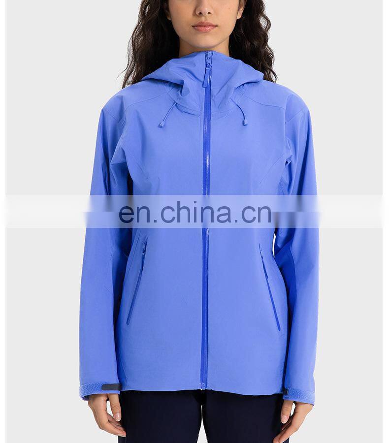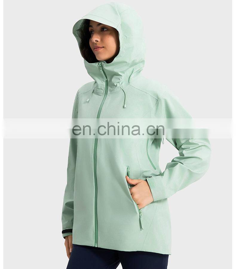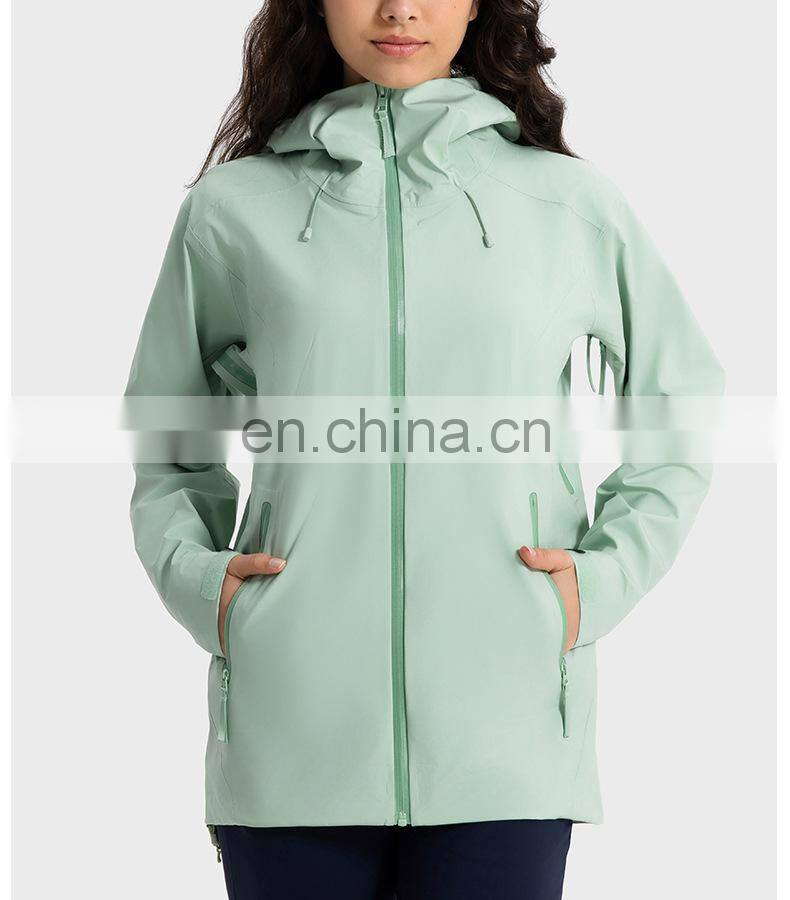 New Breathable Hidden Zipper Pockets Coat Custom Hooded Windbreaker Outdoor Jacket Women Windproof Waterproof Softshell Jacket