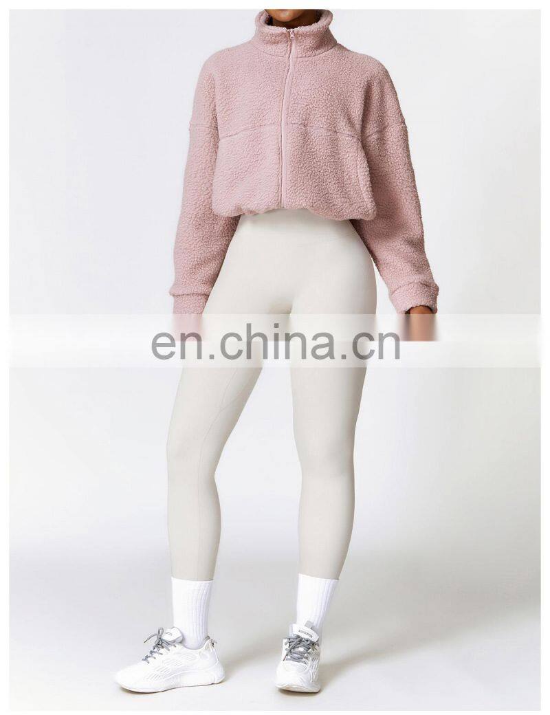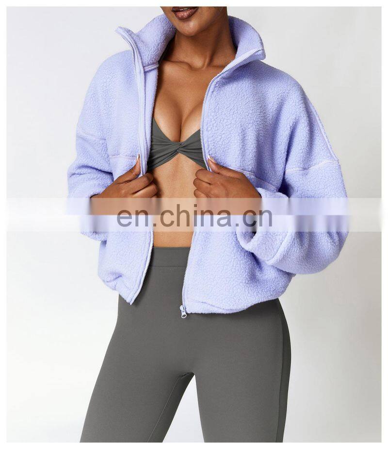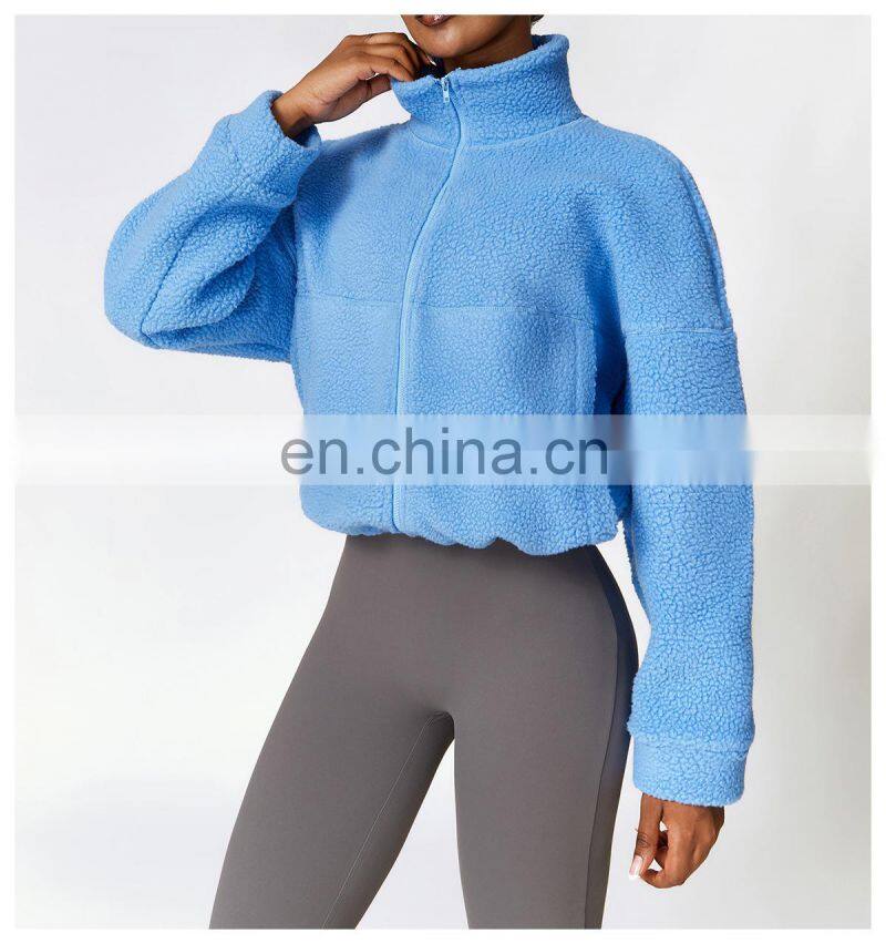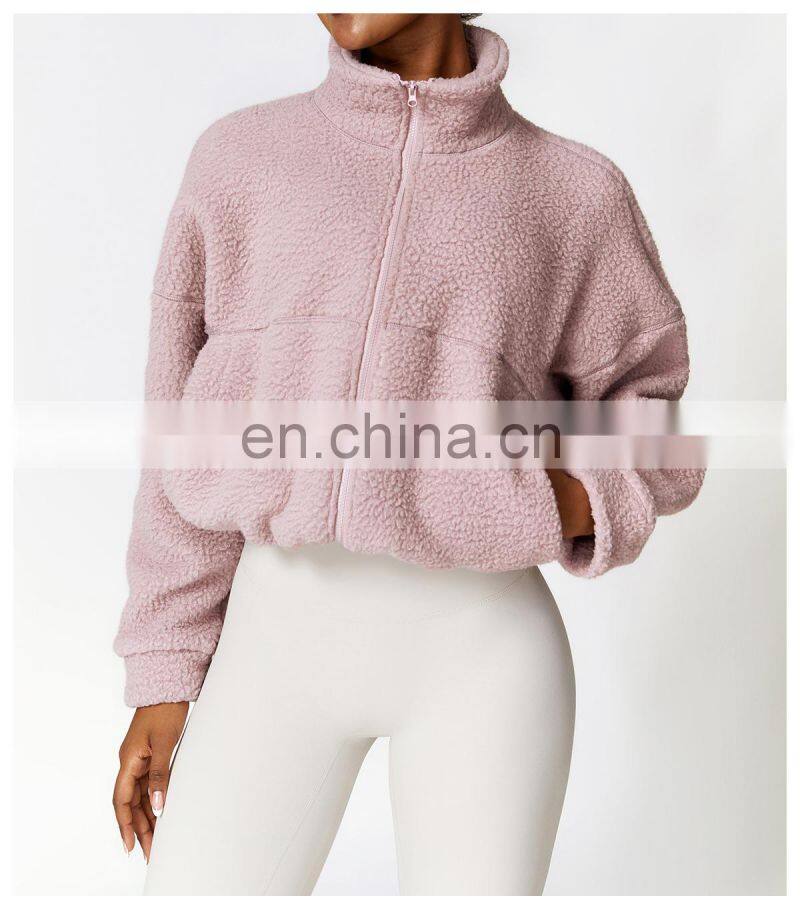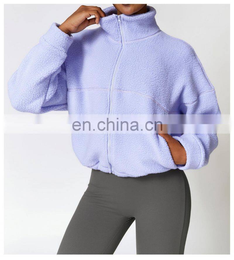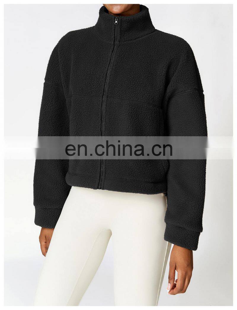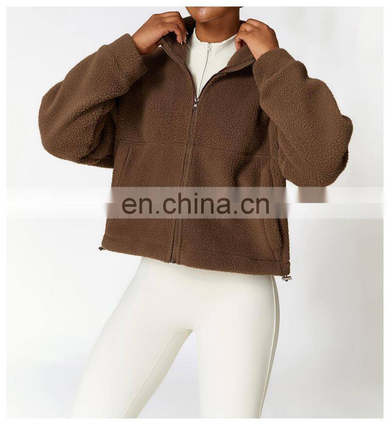Custom Shaker Jackets Winter Warm Coat Stand Collar Outdoor Running Fitness Jacket Women Fleece Zipper Sports Jacket