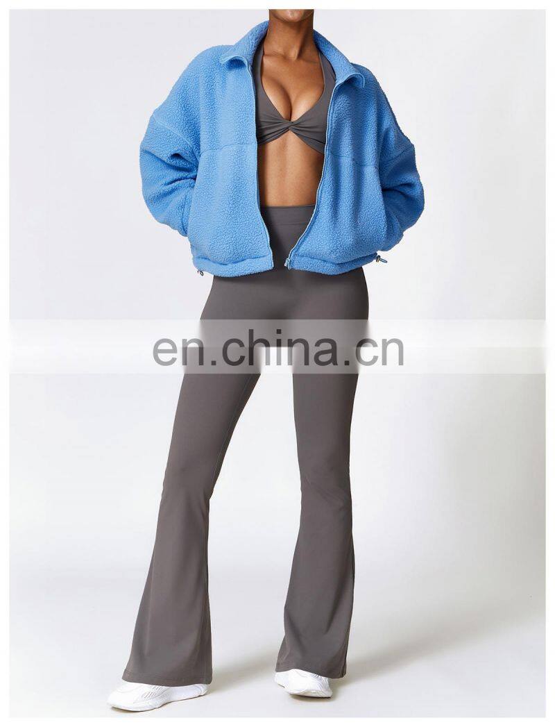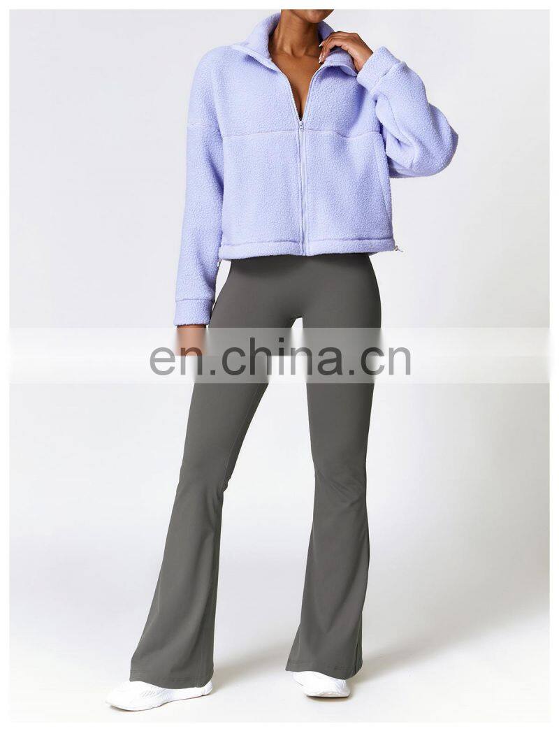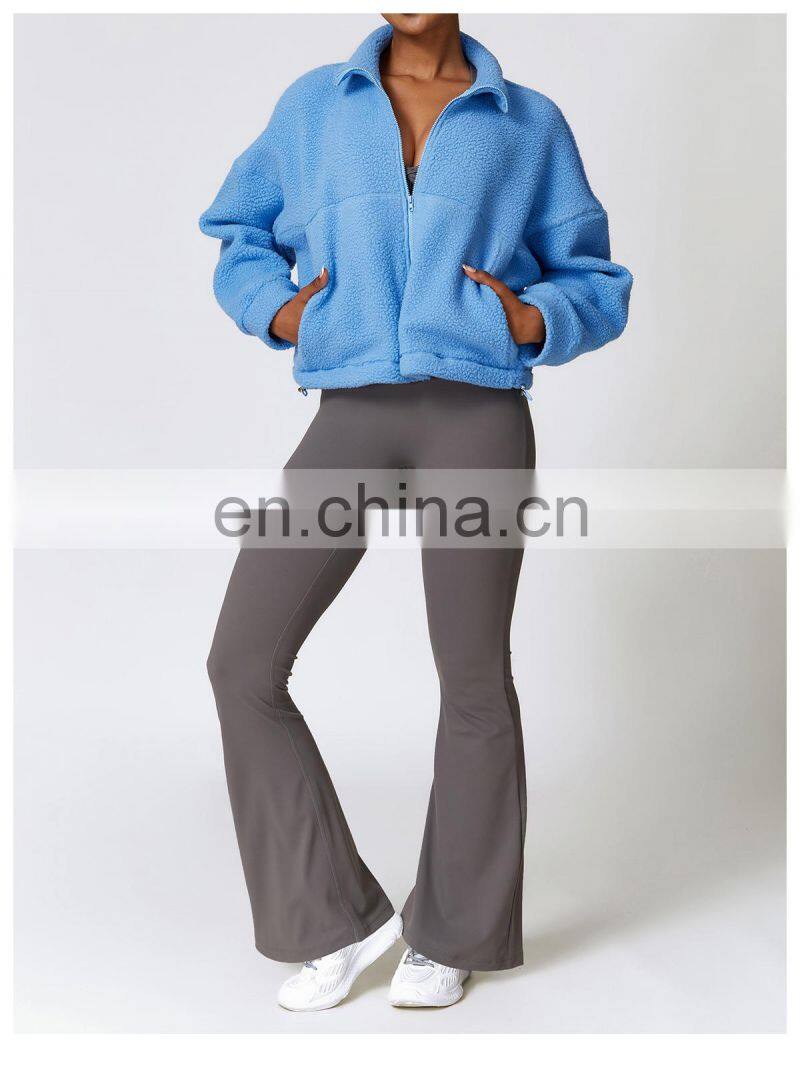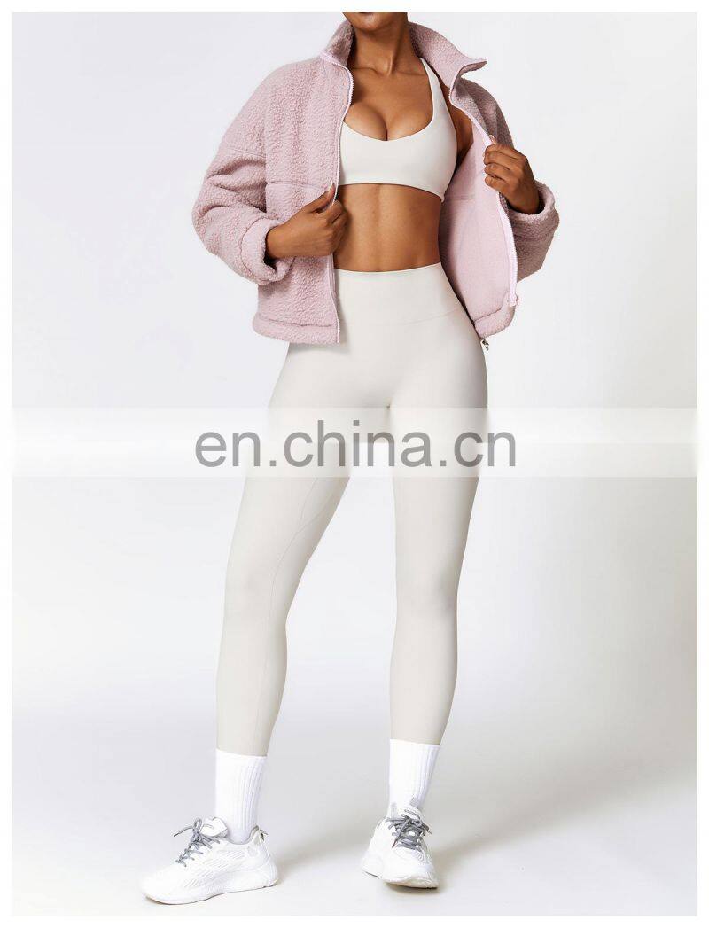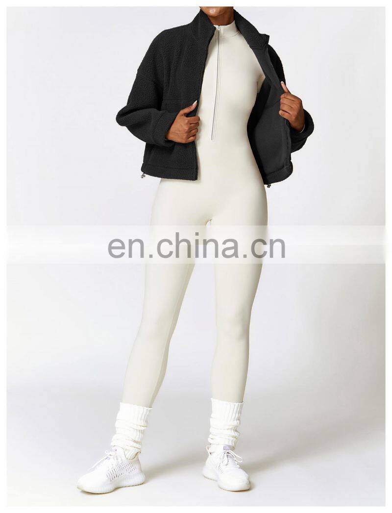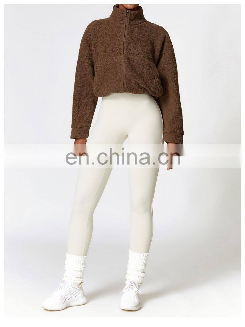 Custom Shaker Jackets Winter Warm Coat Stand Collar Outdoor Running Fitness Jacket Women Fleece Zipper Sports Jacket
