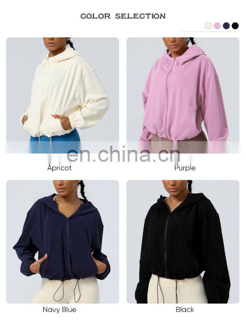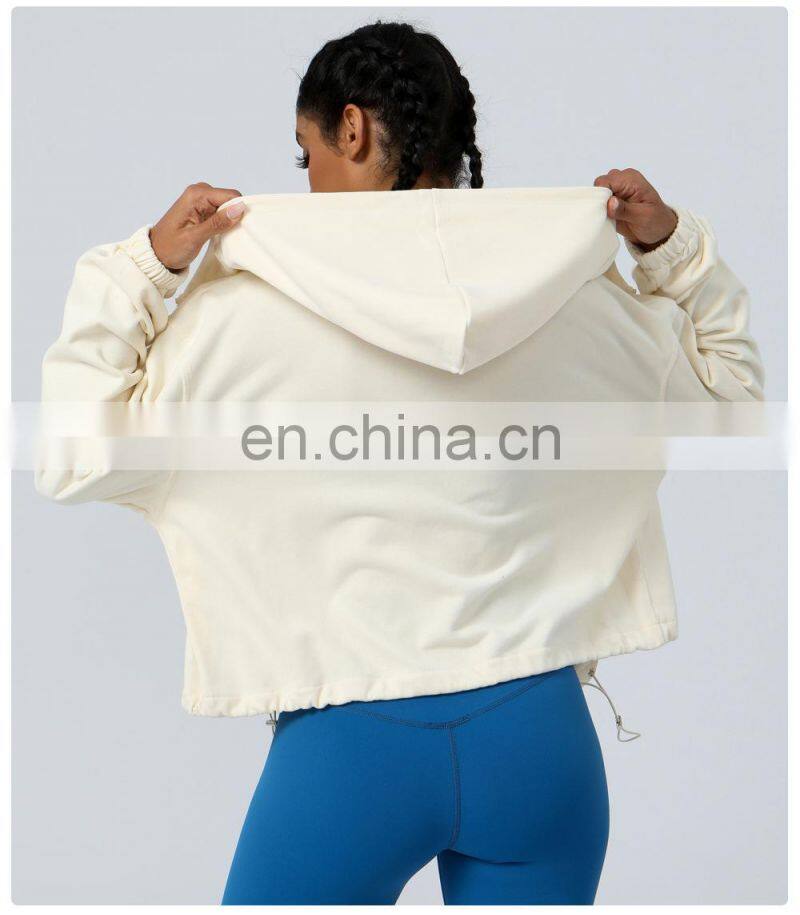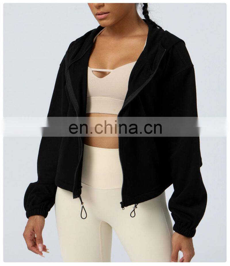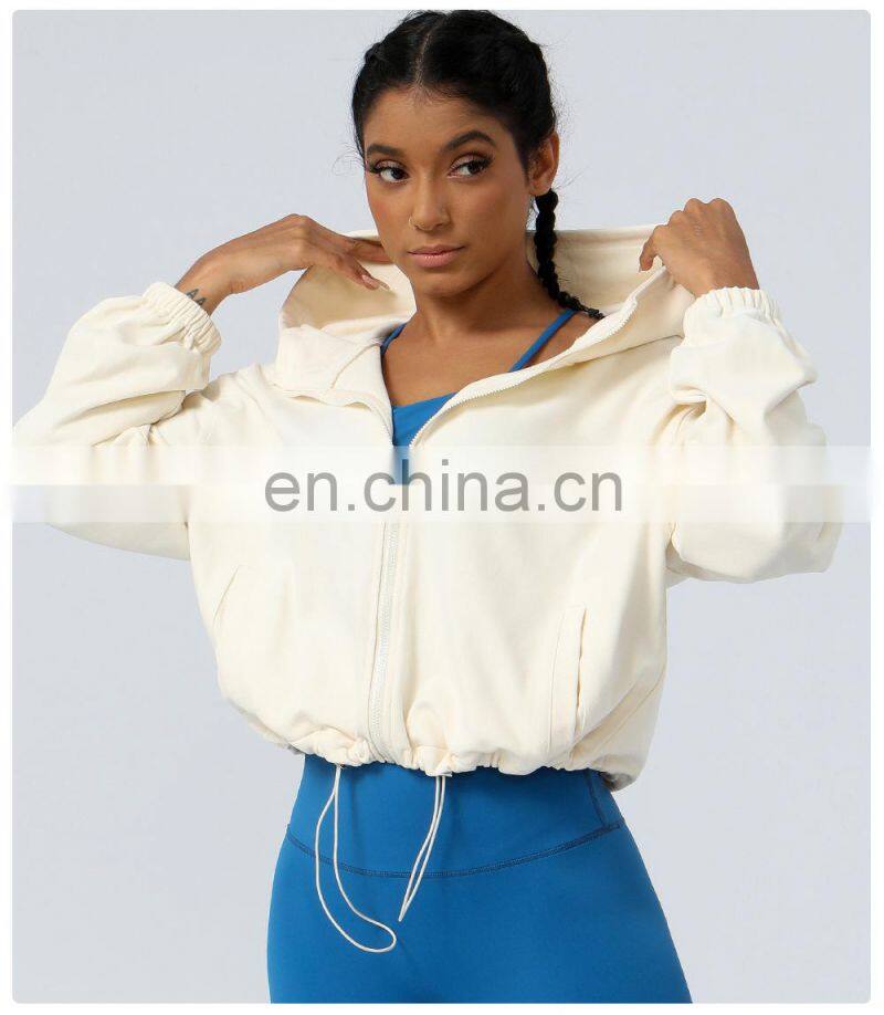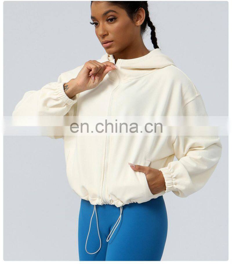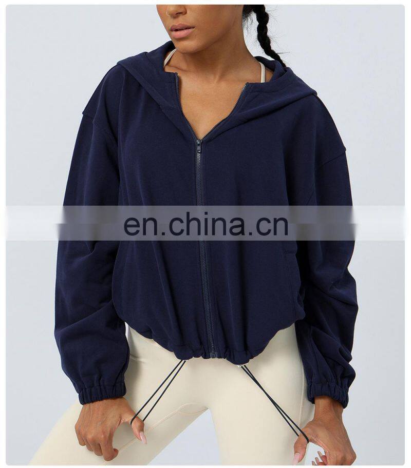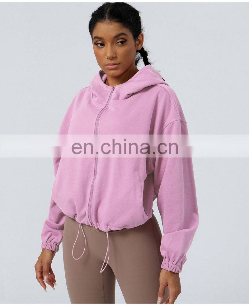 Drawstring Hoody Loose Casual Running Coat Zipper Sports Jackets Long Sleeve Gym Fitness Hooded Wear Yoga Jacket For Women