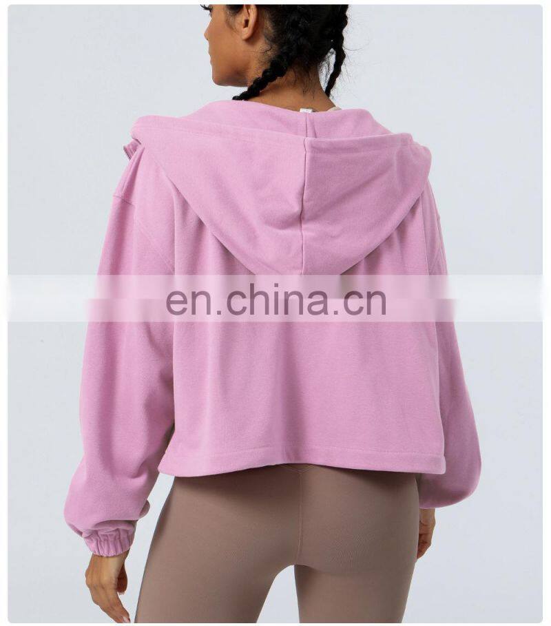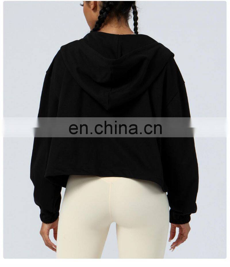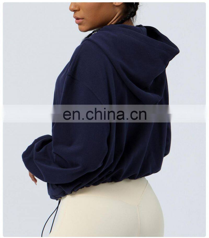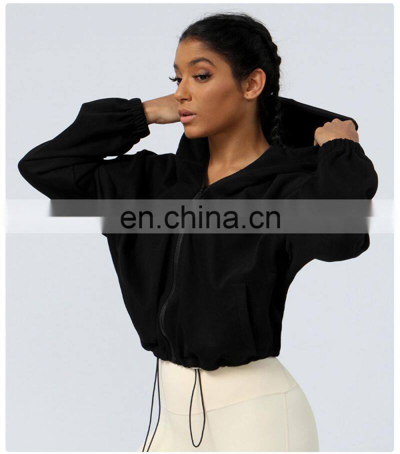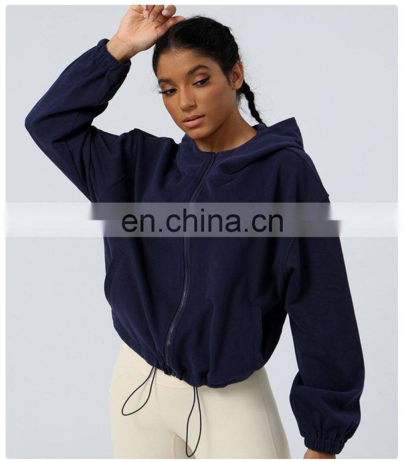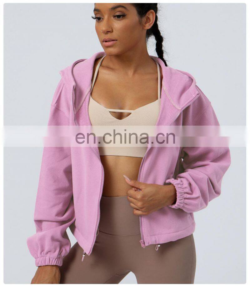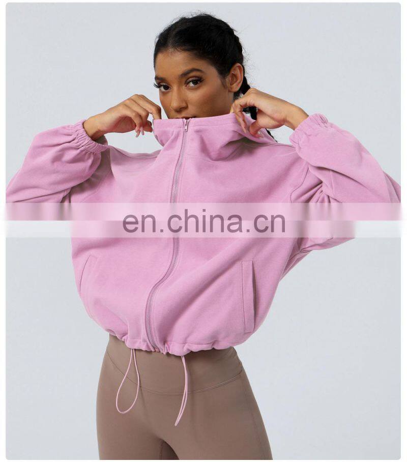 Drawstring Hoody Loose Casual Running Coat Zipper Sports Jackets Long Sleeve Gym Fitness Hooded Wear Yoga Jacket For Women