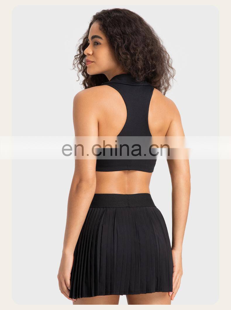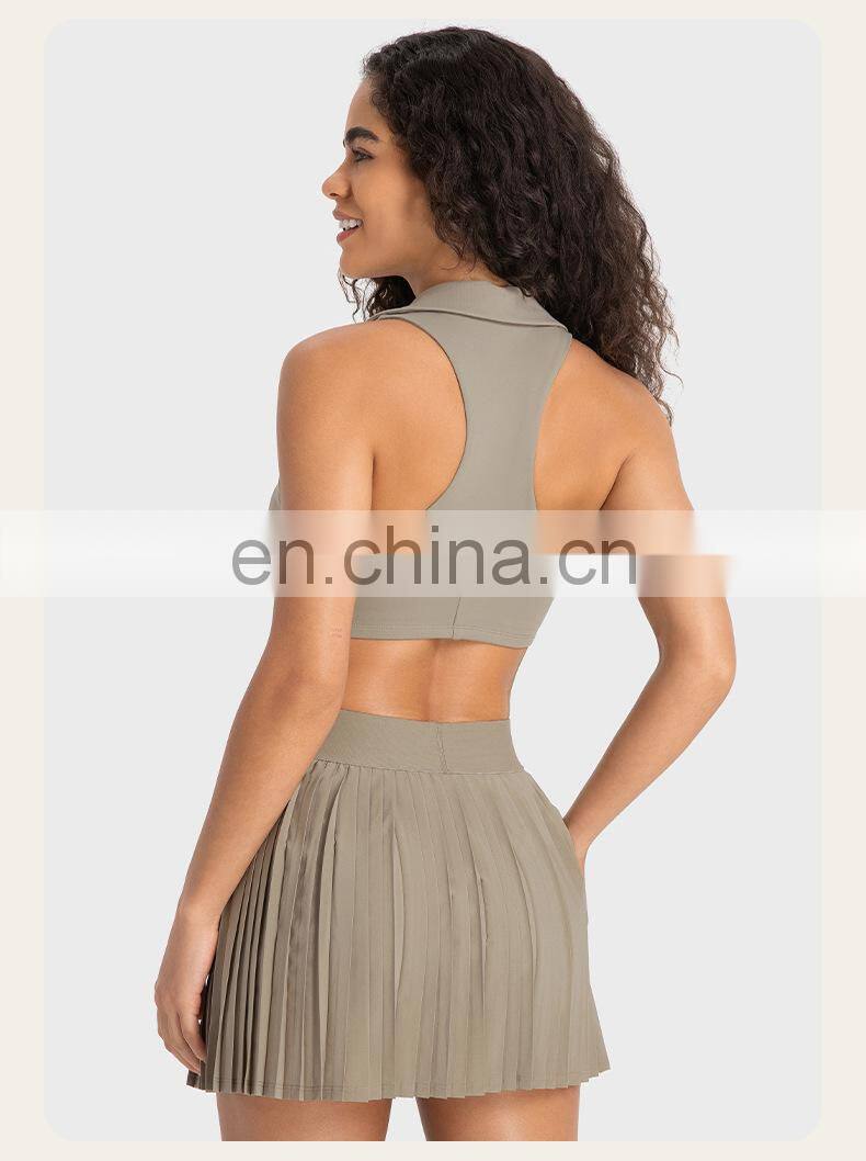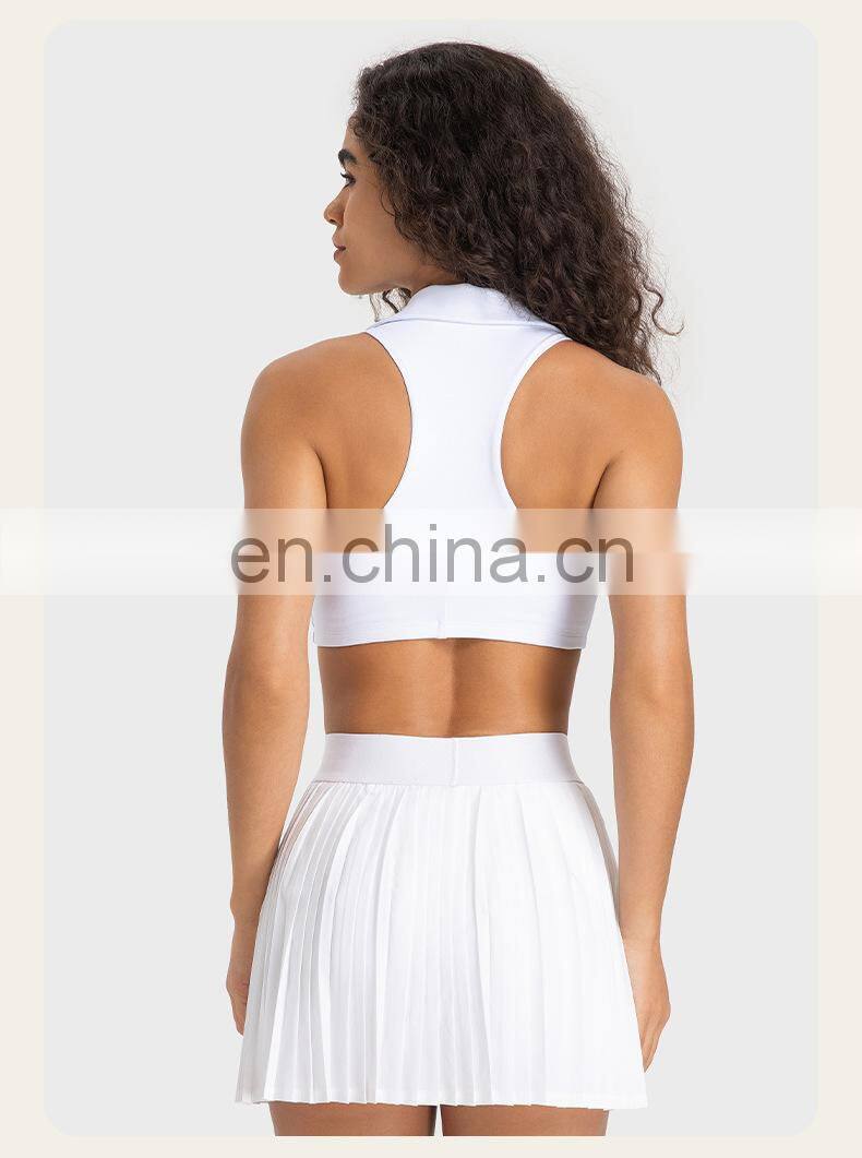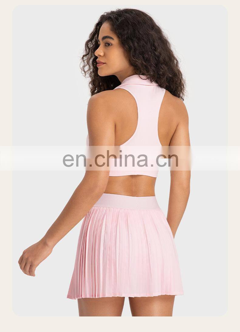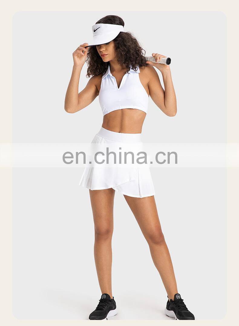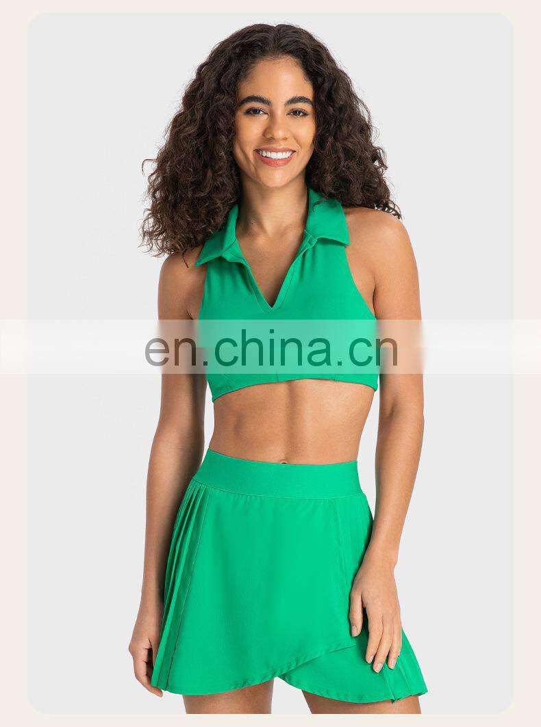 Fashion New Style Two Piece Lapel Racerback Sports Bra High Waist Pleated Mini Skirt Golft Tennis Outdoor Fitness Wear Yoga Set