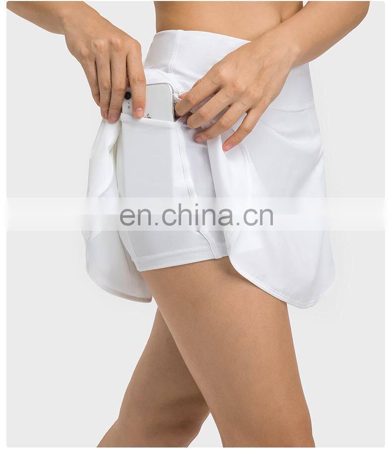 Blank Custom Logo 2-In-1 Ladies Workout Running With Pockets Golf Tennis Mini Skirt Apparel Women Gym Yoga Sports Wear