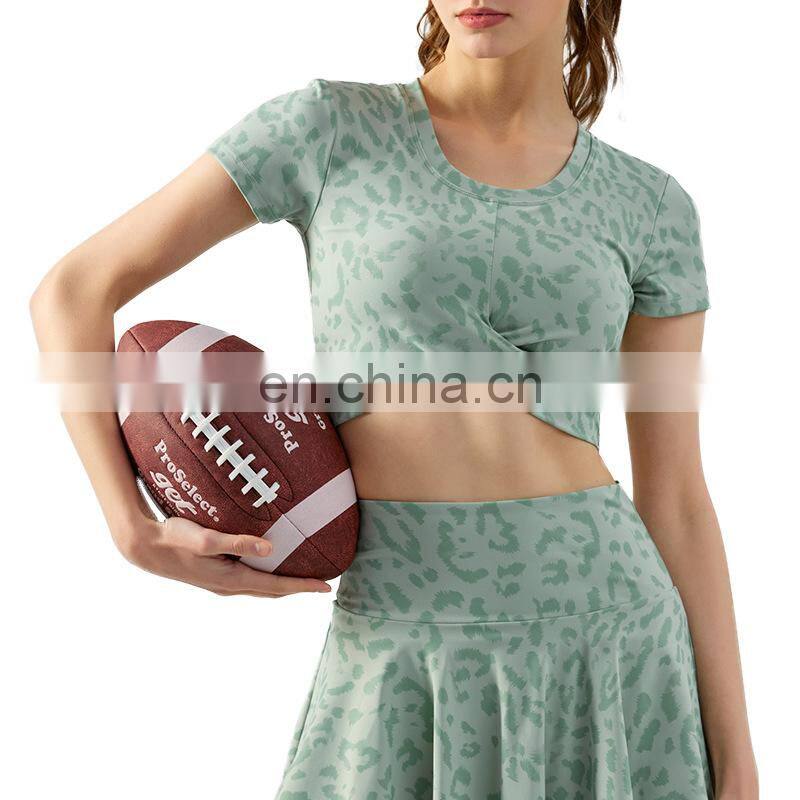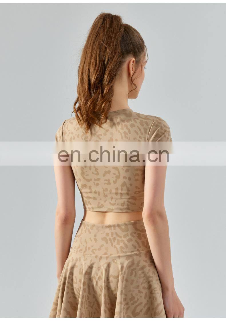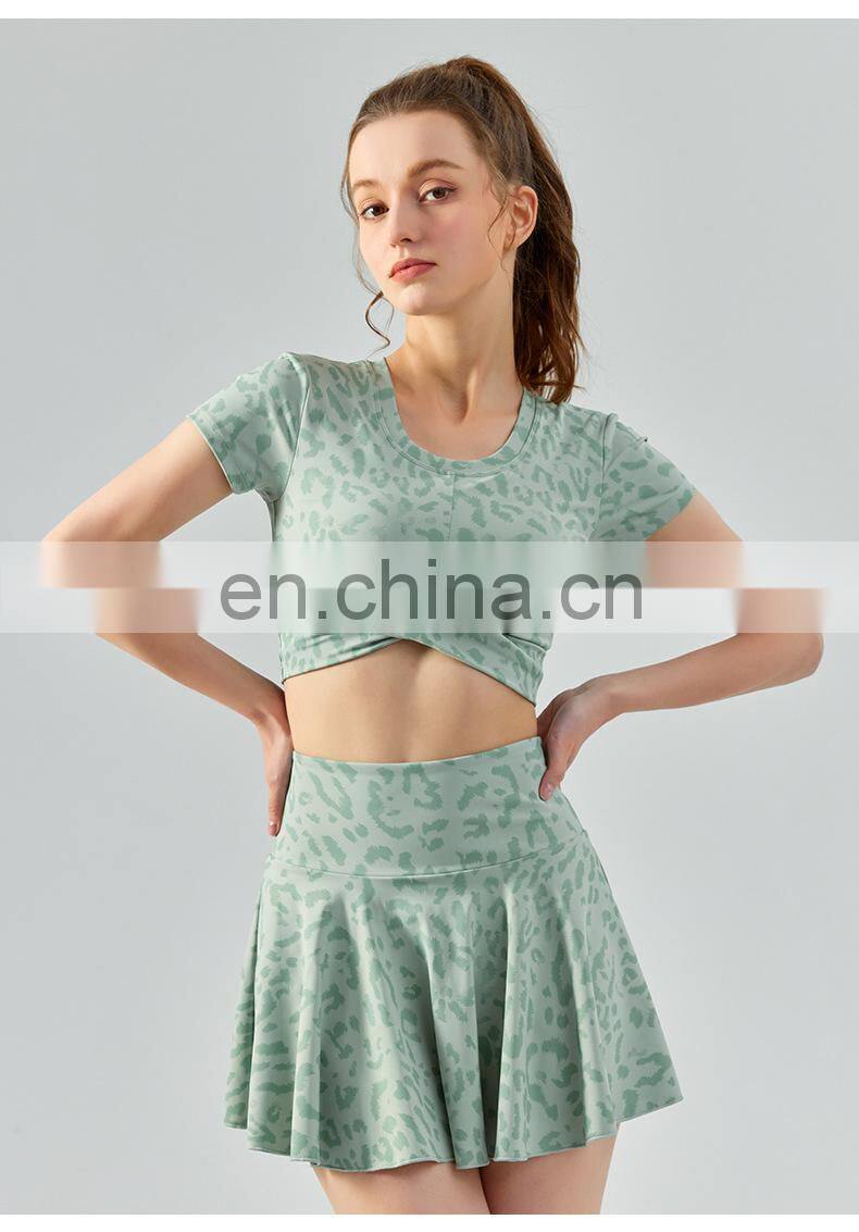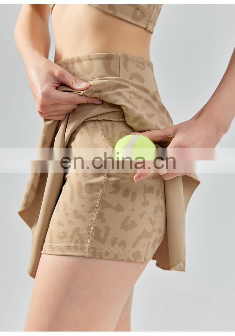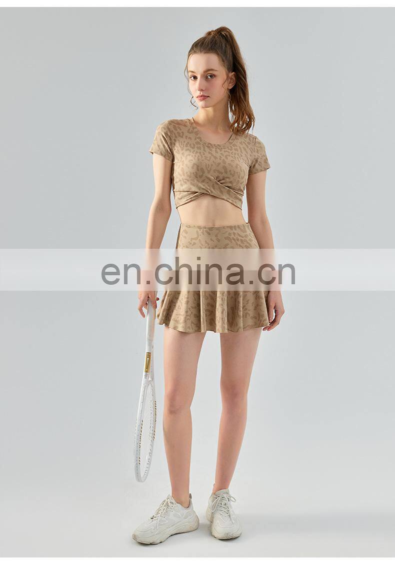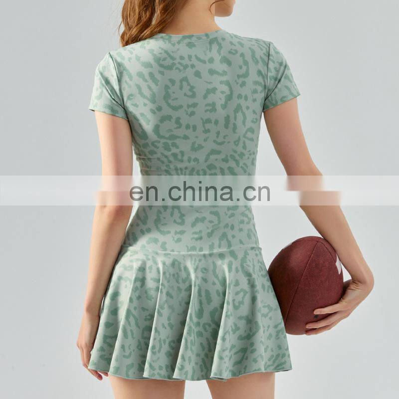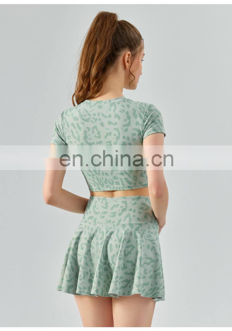 Leopard Print Tennis Golf Shirt 2-In-1 Mini Skirt Suit Set Women Outdoor Sports Wear Baseball Uniform 2 Pcs Gym Fitness Clothes