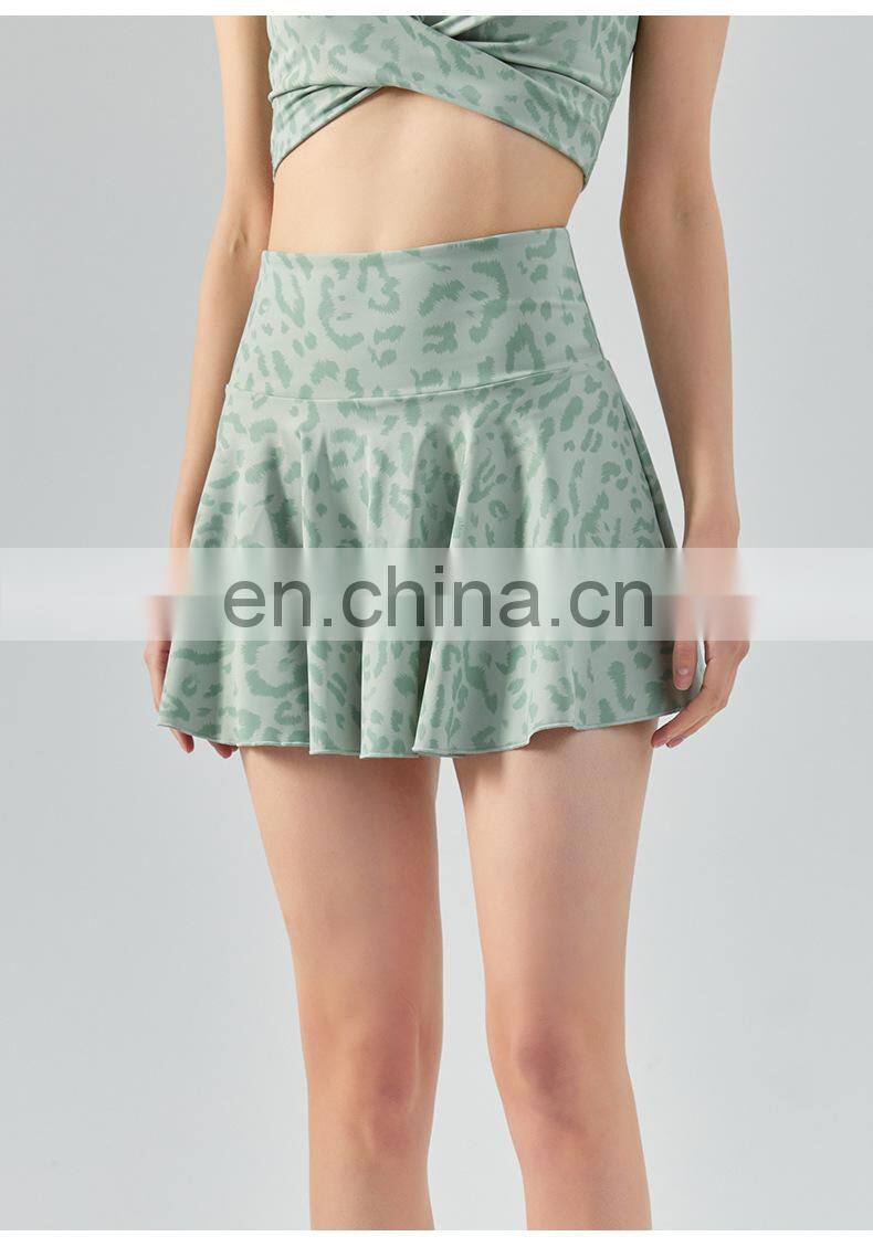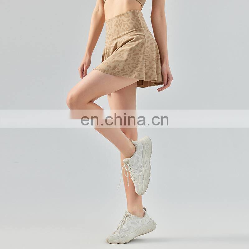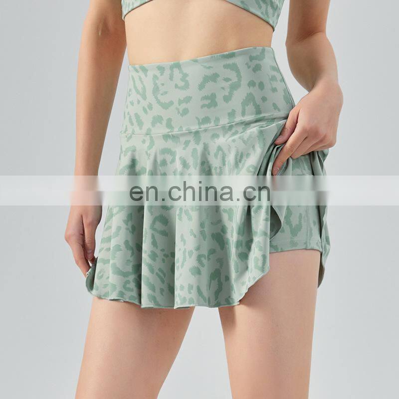 Quick Dry Leopard Print High Waist 2-in-1 Mini Tennis Skirt Women Outdoor Sportswear Golf Apparel With Side Pocket Shorts Skirt