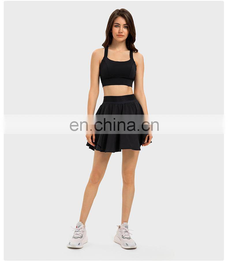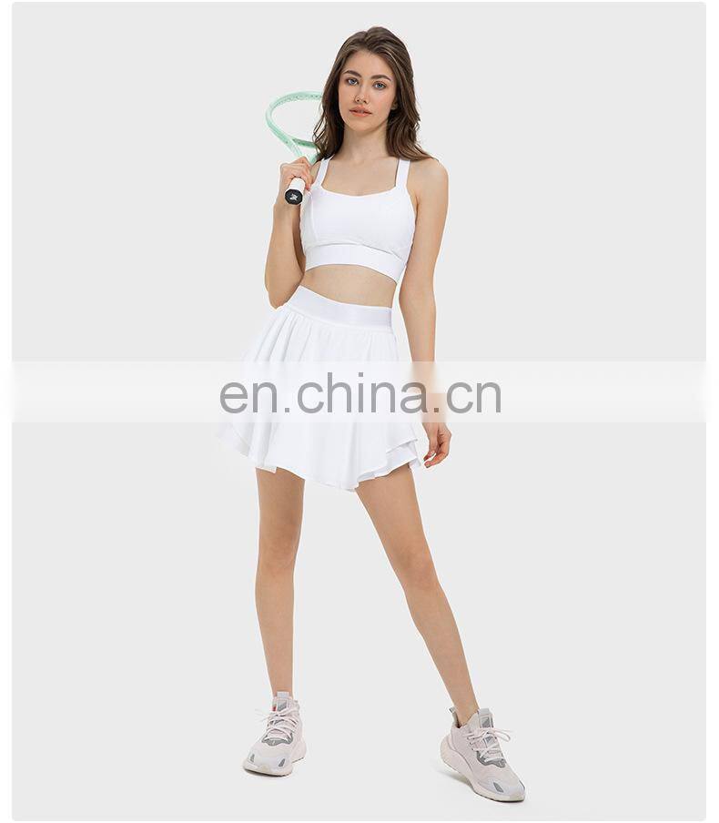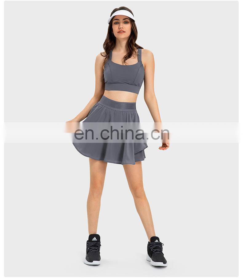 Good Quality Ladies Solid Color Sports Yoga Tennis Set With Shorts Fitness Skirt 2 PCS Gym Set Women Workout Wear ClothesUS$ 17.75 - 17.75MOQ: 500 Sets