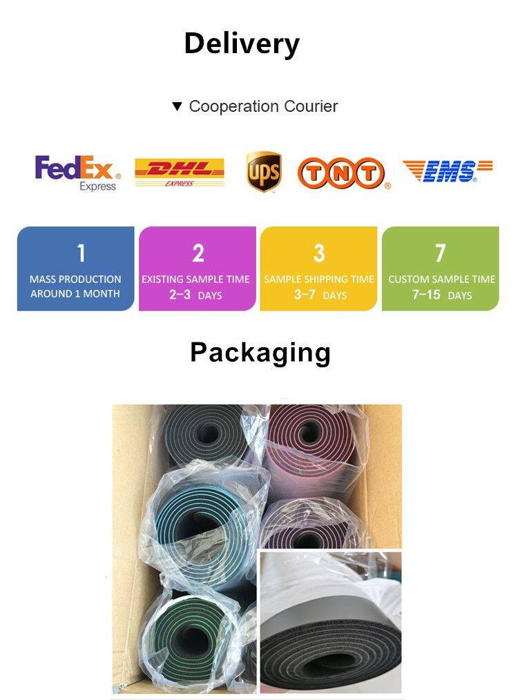 5.Lead time: For approval samples ,usually 3-5 days; for mass production, it takes around 12-15 days for regular order.If you ordr 1000-5000 pieces of Yoga mats,it needs to 20-30 days.