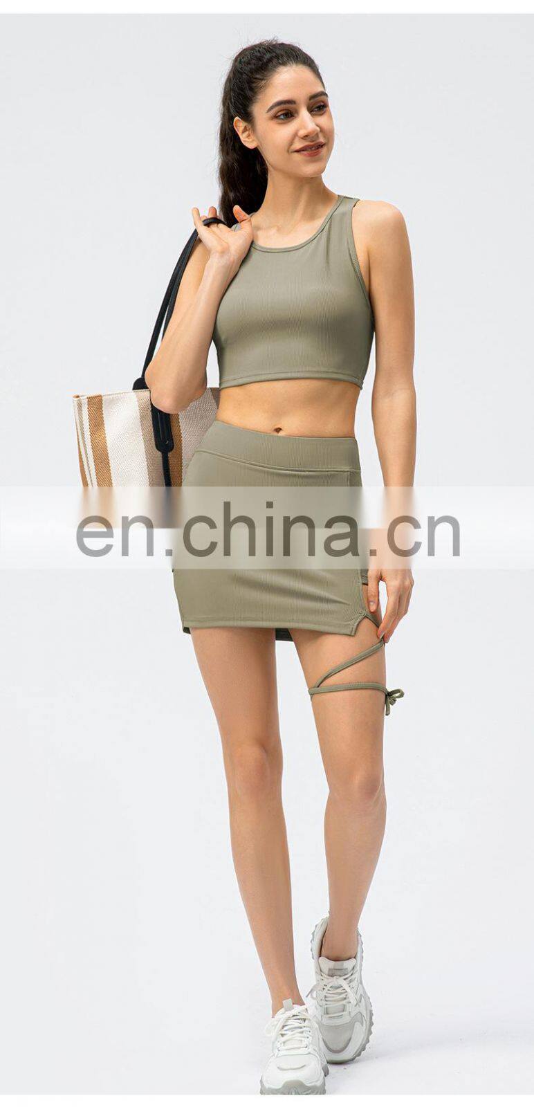 Newest Custom Logo Two Ways To Wear Sexy Bra And With Shorts Mini Skirt Tennis Sports Two Piece Set Women Fitness Golf OutfitUS$ 17.95 - 17.95MOQ: 500 Sets