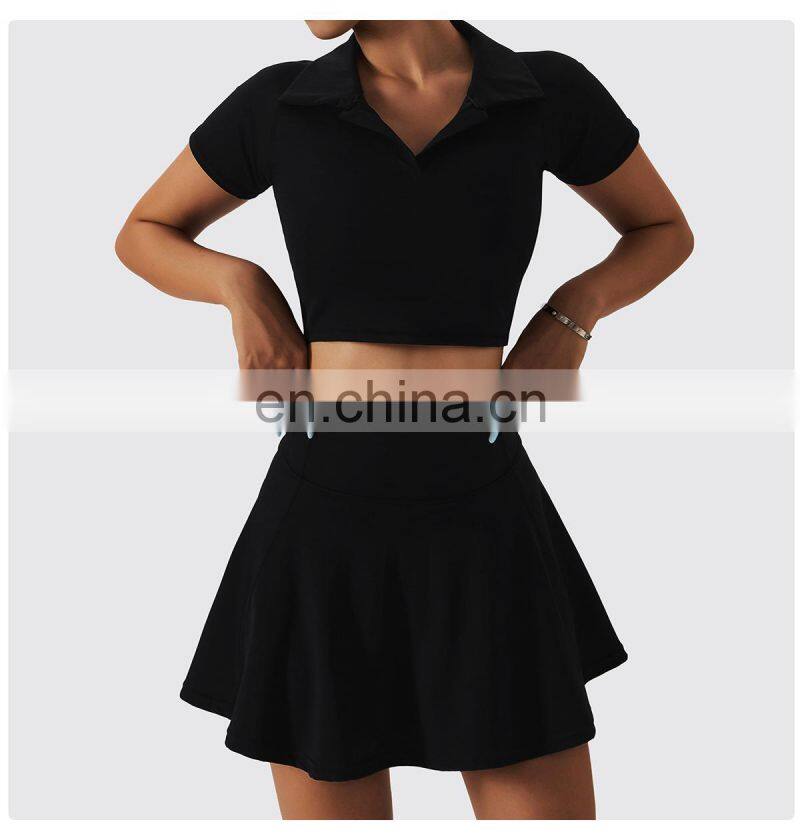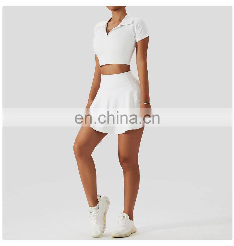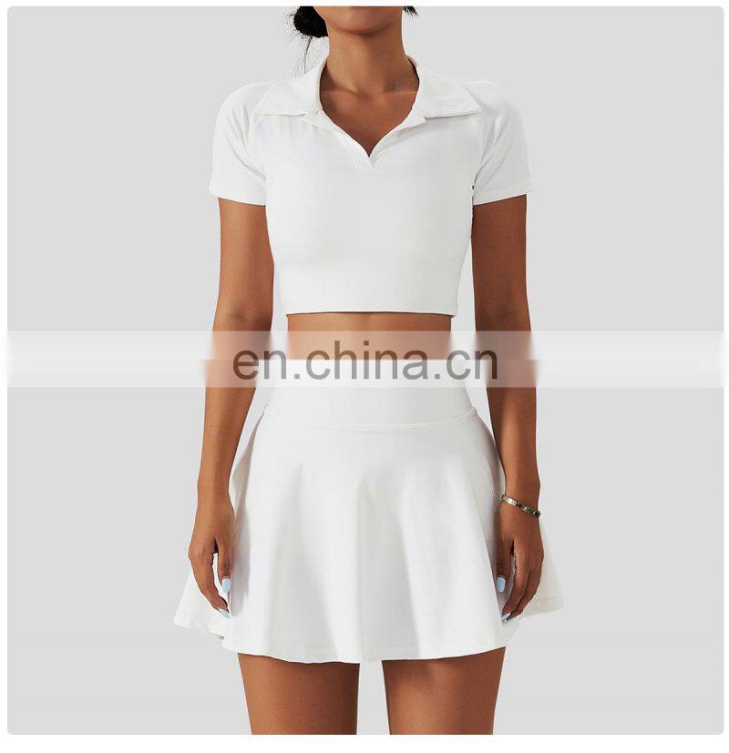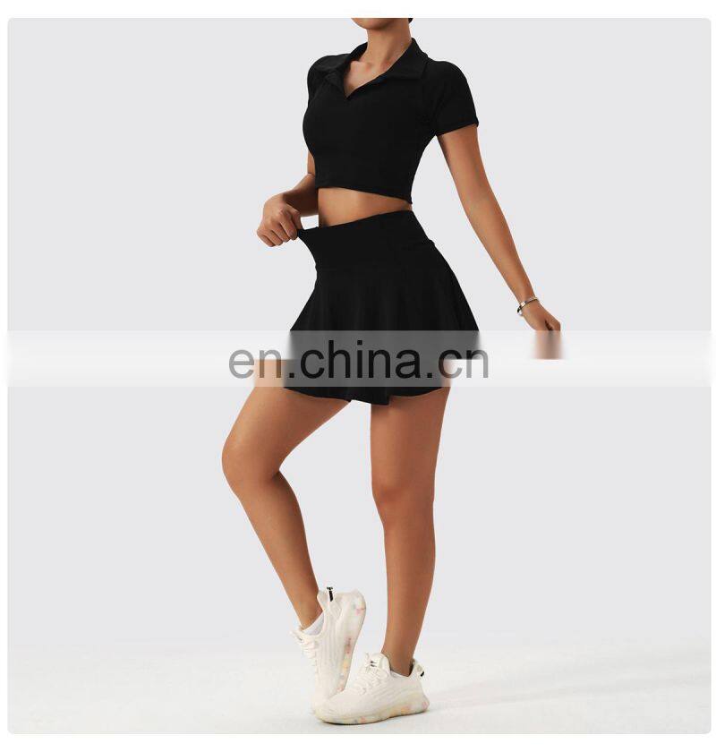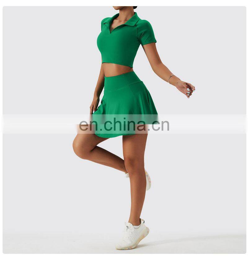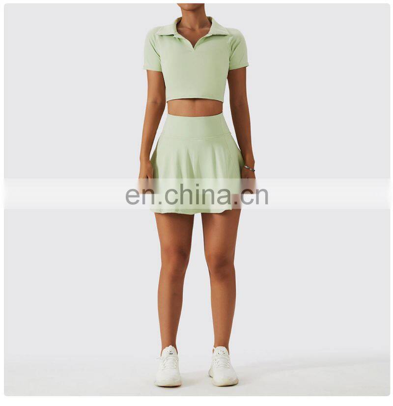 Wholesale Quick Dry Sports Clothing Tennis Dress Short T Shirt 2 Piece Suit Fitness Golf Wear Yoga Sets Women Tennis Skirt Set
