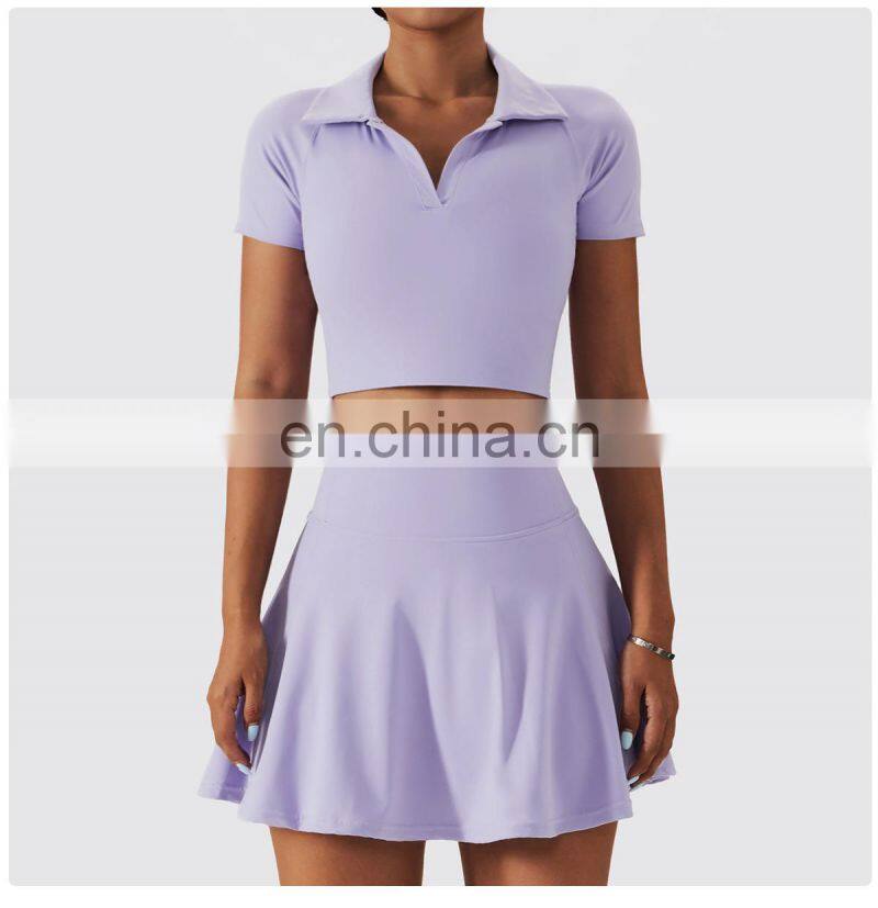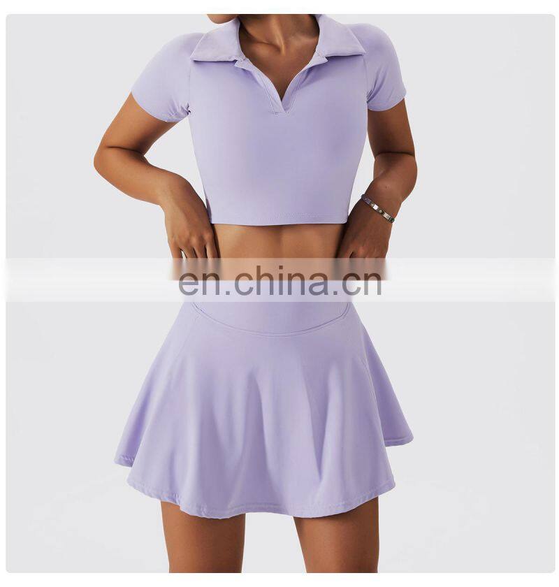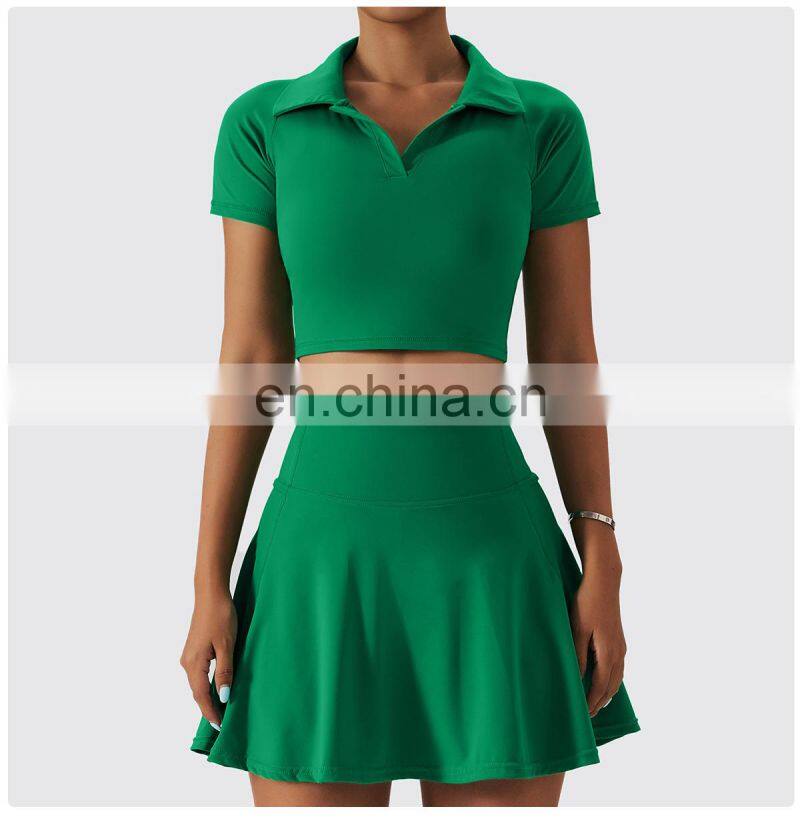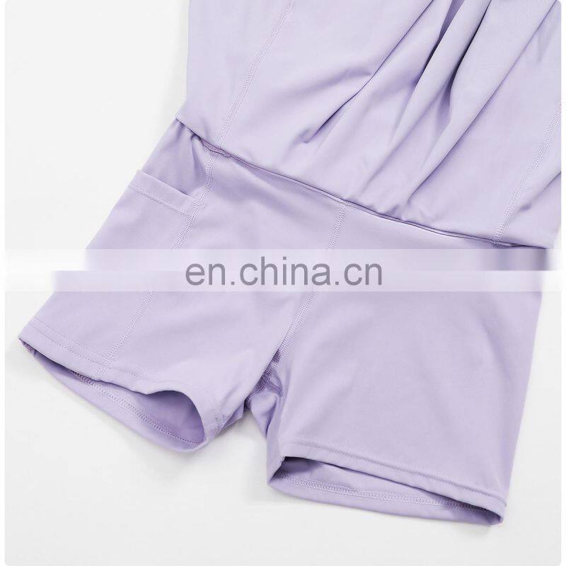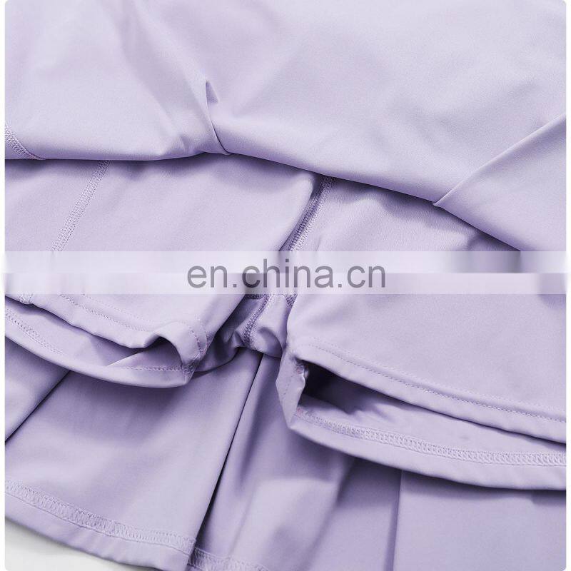 - Custom Logo Breathable Sexy Solid 2 in 1 Side Pockets Golf Tennis Set Women Short Yoga Skirt Dress Quick Drying Yoga Dress