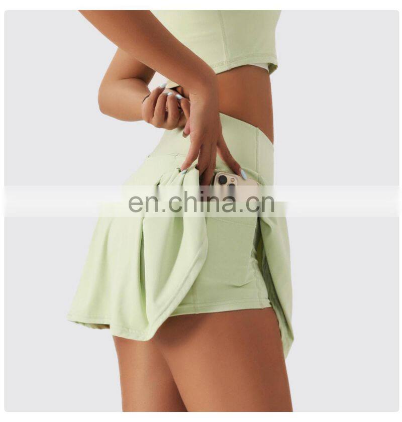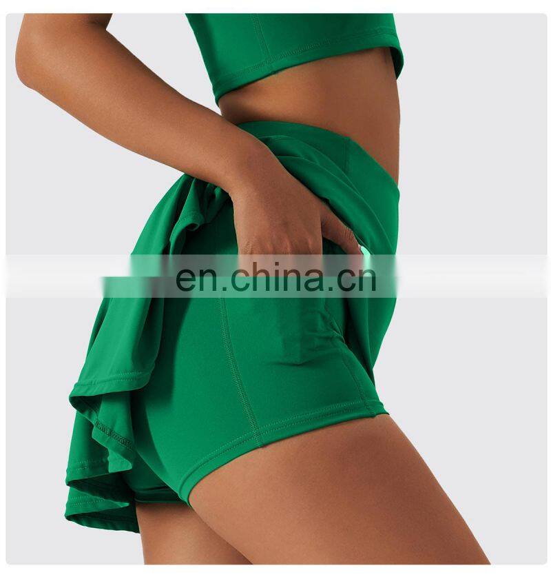 - Custom Sportswear Quick Dry Fitness Running 2-in-1 Skirt Women Golf Shorts Skirts High Waist Tennis Skirt With Pockets