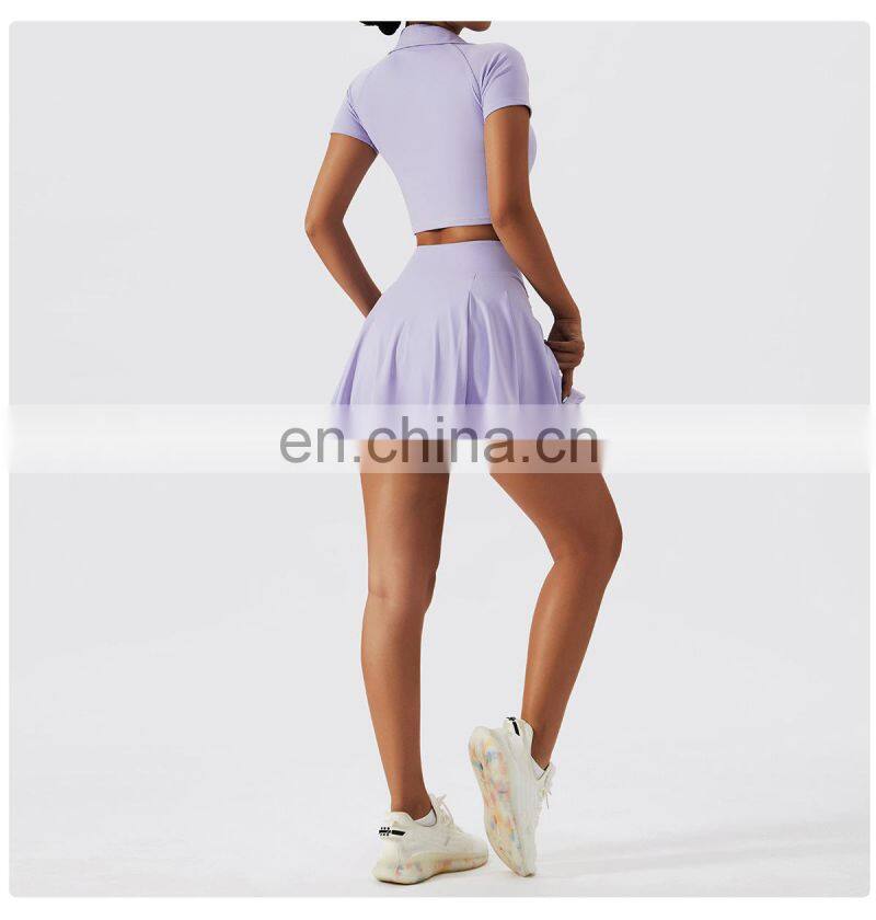 - New Wholesale Quick Dry Sexy Racer Back Straps Bra 2-In-1 Pleated Mini Skirt Two Piece Tennis Set Suit Golf Wear Women Clothes