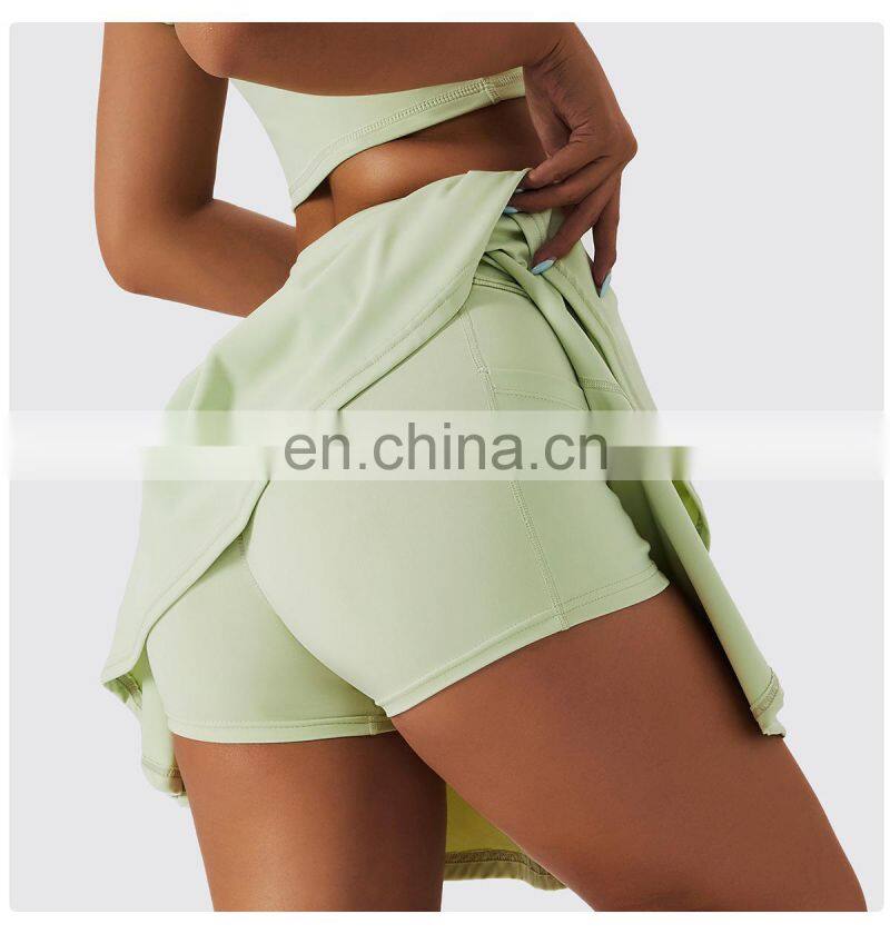 Custom Sportswear Quick Dry Fitness Running 2-in-1 Skirt Women Golf Shorts Skirts High Waist Tennis Skirt With Pockets