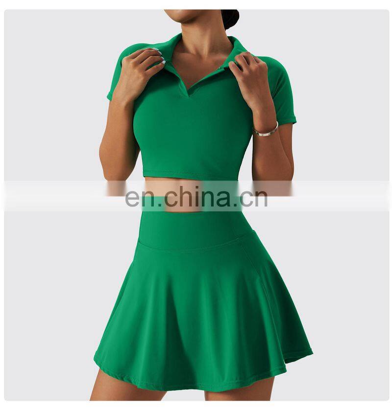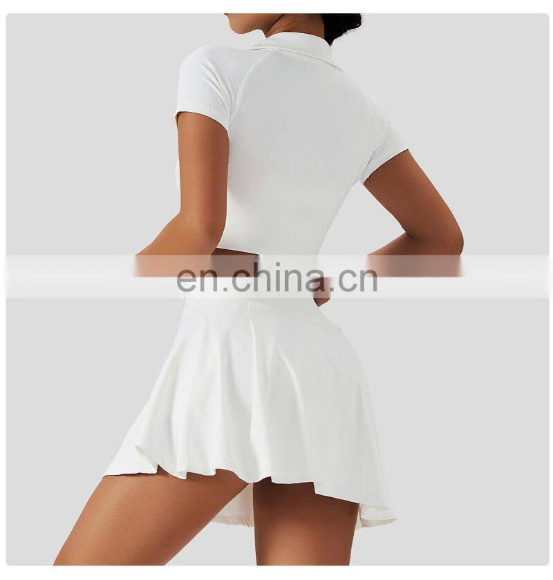 - Custom Logo Breathable Sexy Solid 2 in 1 Side Pockets Golf Tennis Set Women Short Yoga Skirt Dress Quick Drying Yoga Dress