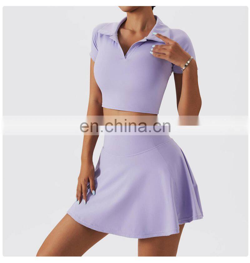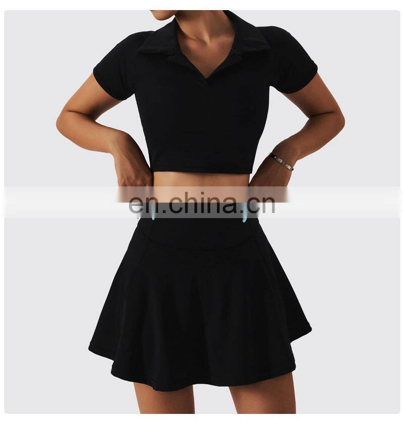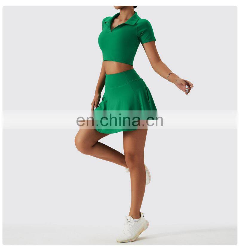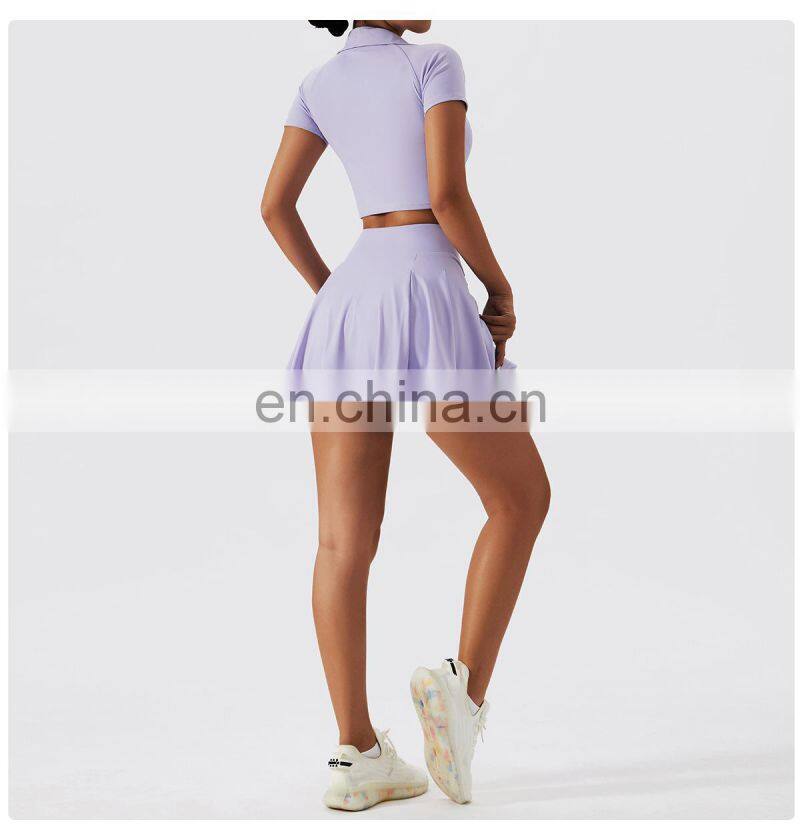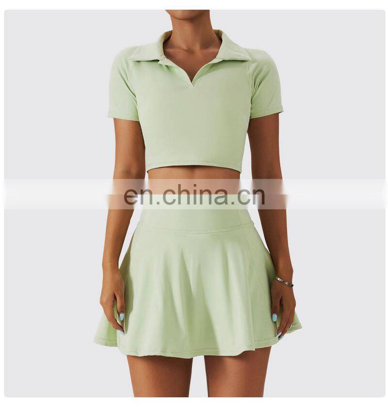 - Wholesale Quick Dry Sports Clothing Tennis Dress Short T Shirt 2 Piece Suit Fitness Golf Wear Yoga Sets Women Tennis Skirt Set
