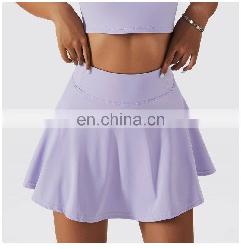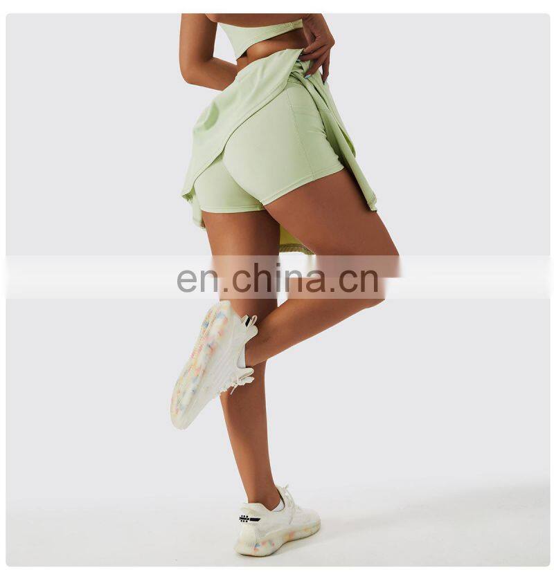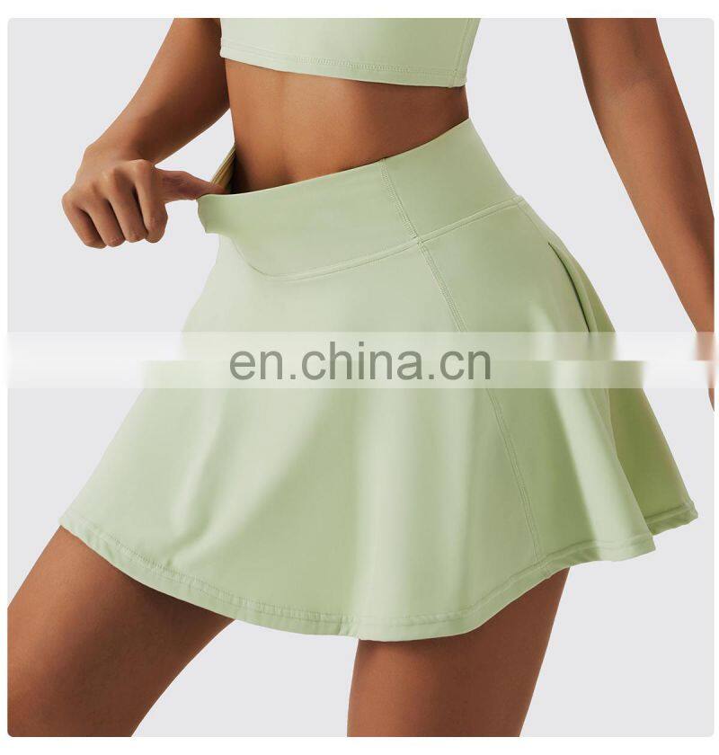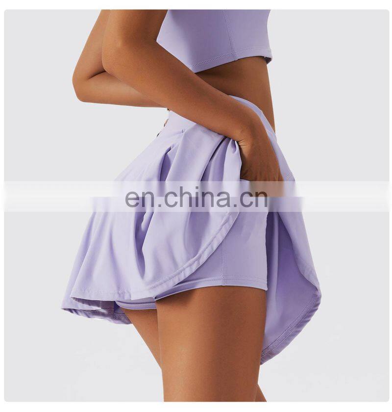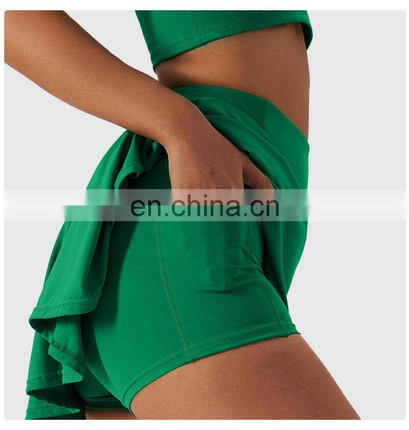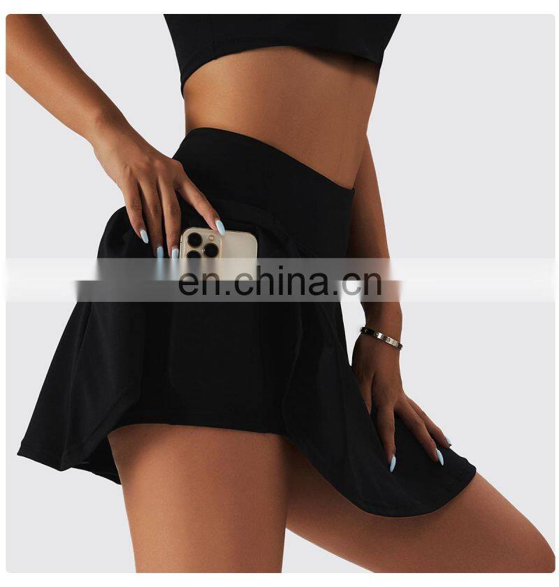 Custom Sportswear Quick Dry Fitness Running 2-in-1 Skirt Women Golf Shorts Skirts High Waist Tennis Skirt With Pockets