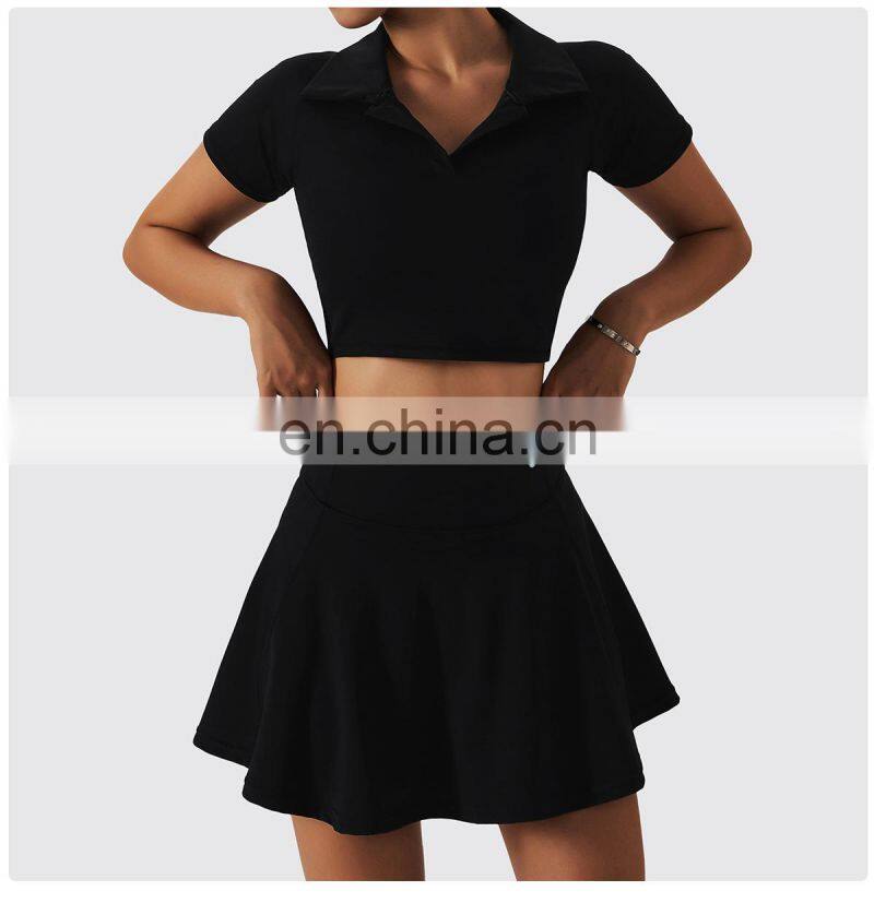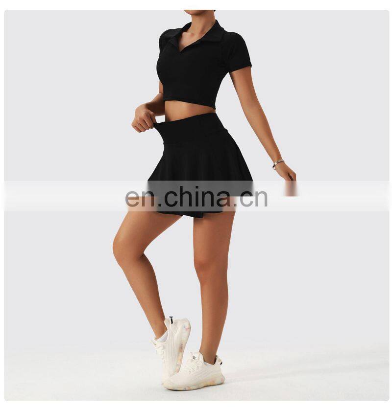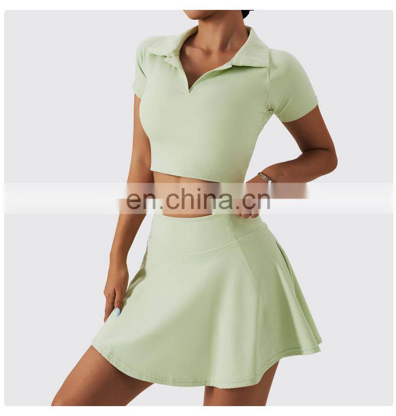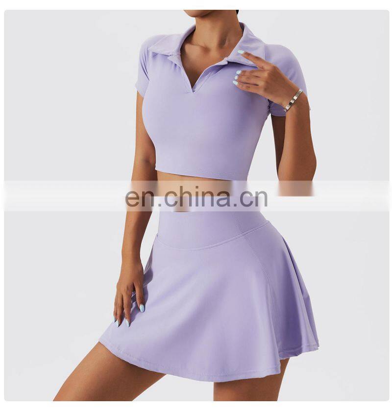 Fashion New Style Two Piece Lapel Racerback Sports Bra High Waist Pleated Mini Skirt Golft Tennis Outdoor Fitness Wear Yoga SetUS$ 17.45 - 17.45MOQ: 500 Sets