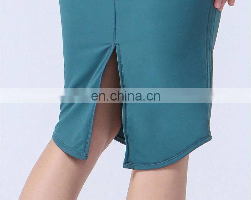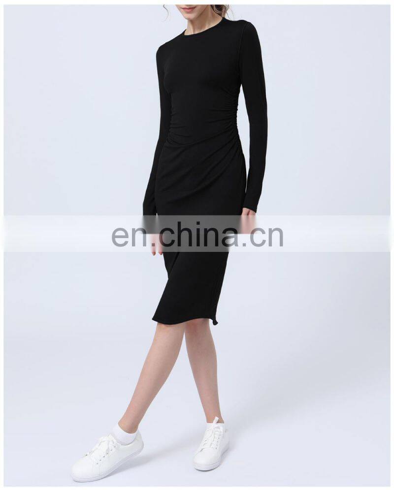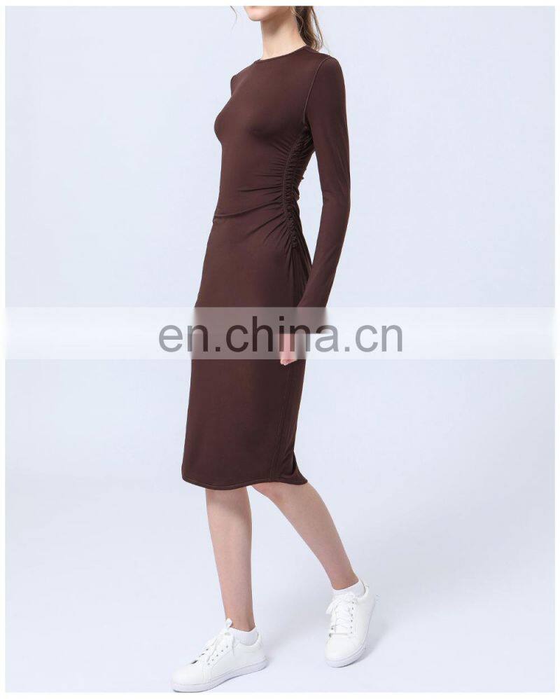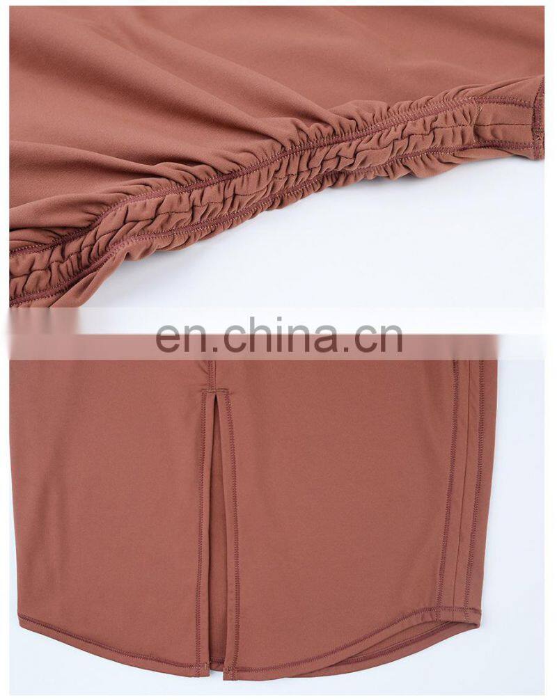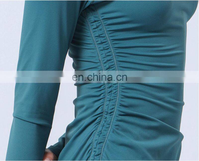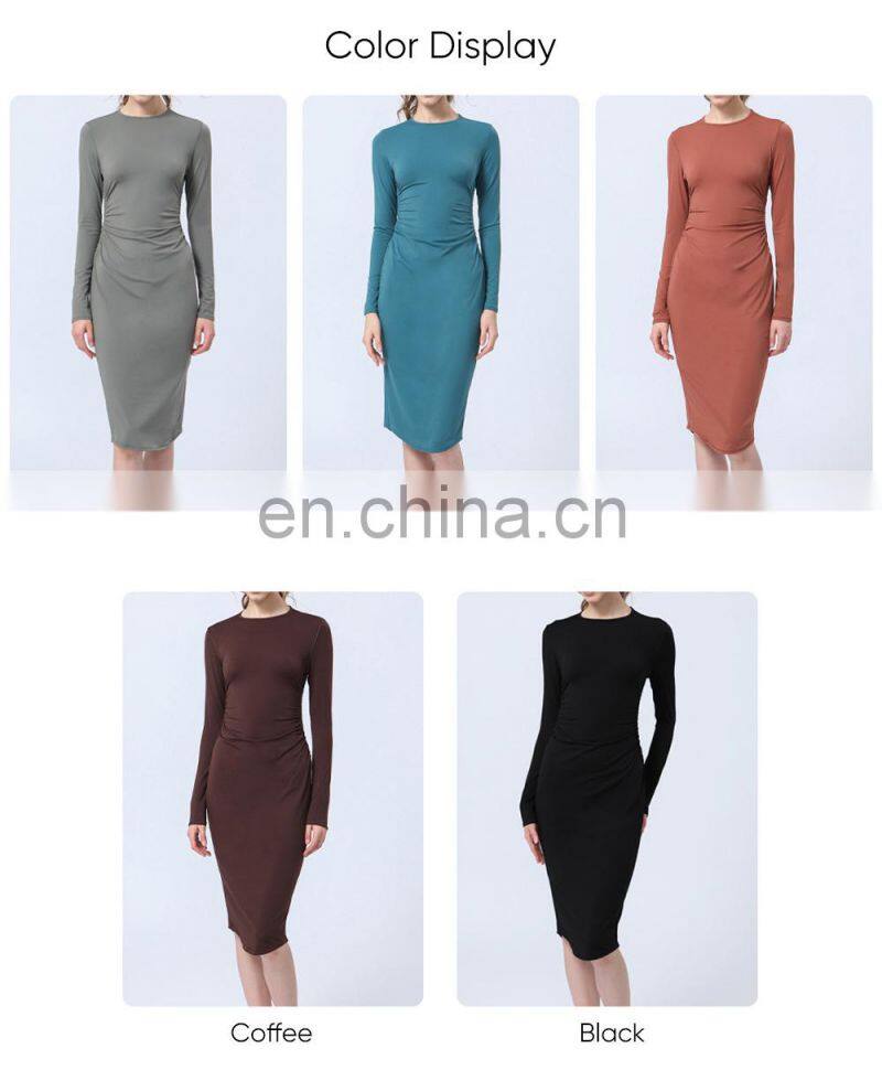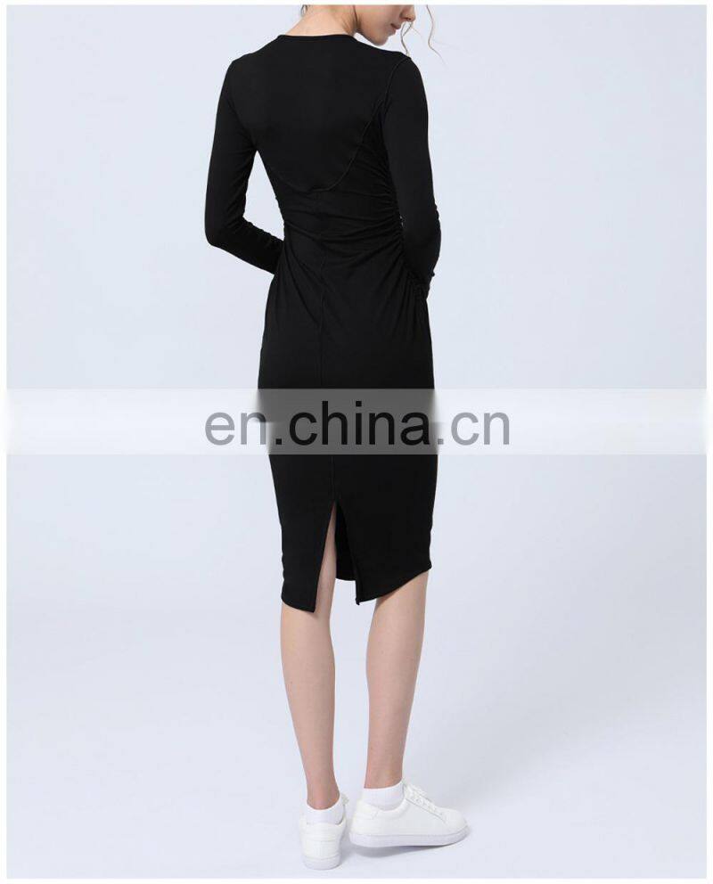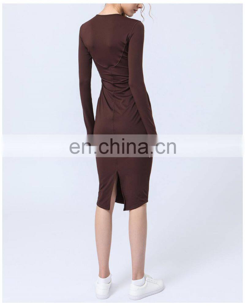 Long Sleeve Waisted Ruffles Split Back Yoga Dress Custom Logo Workout Clothing Gym Fitness Wear Yoga Skirt Women Sports Dress