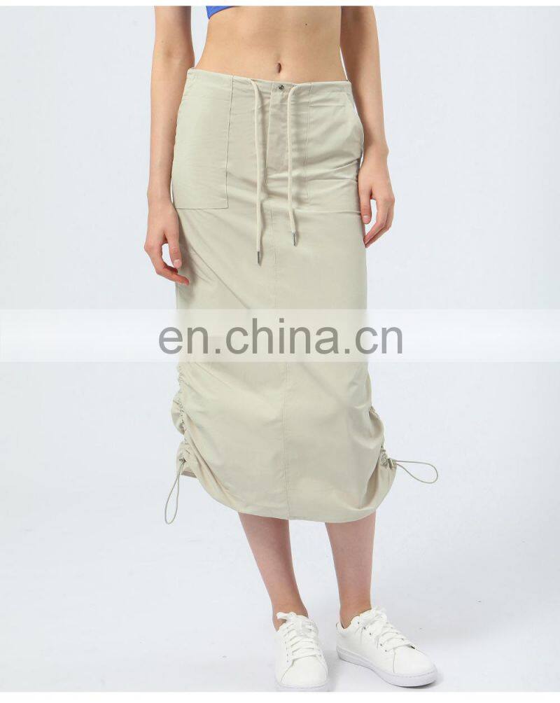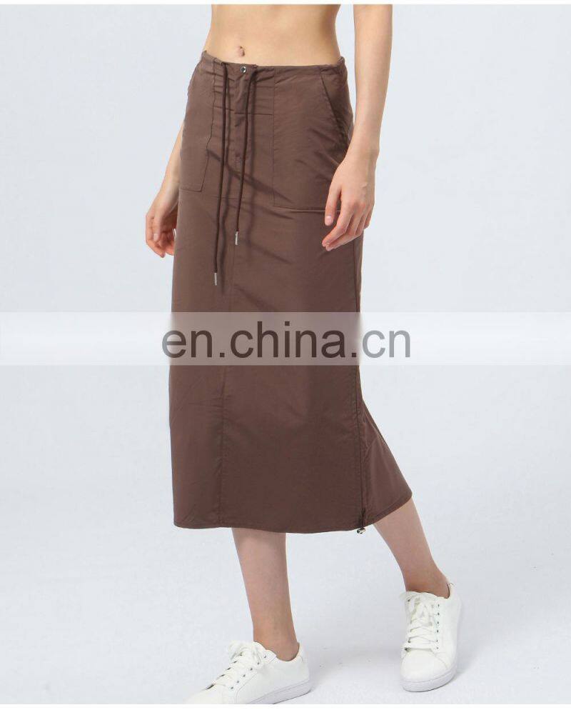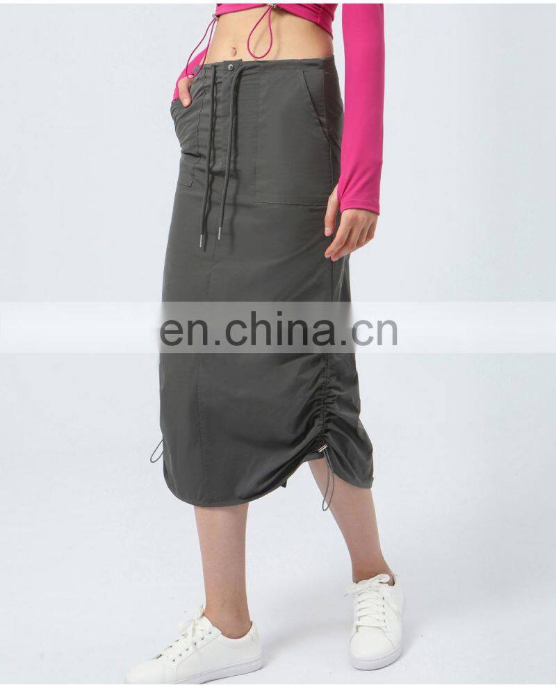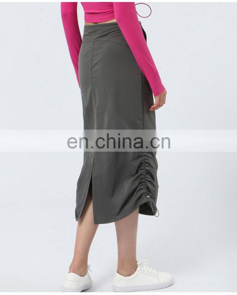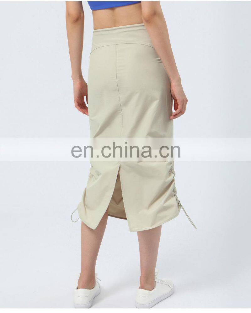 Custom Logo Women Workout Clothing Split A-line Lift Hip Casual Half-body Cargo Dress Gym Fitness Wear Yoga Skirt Sports Dress