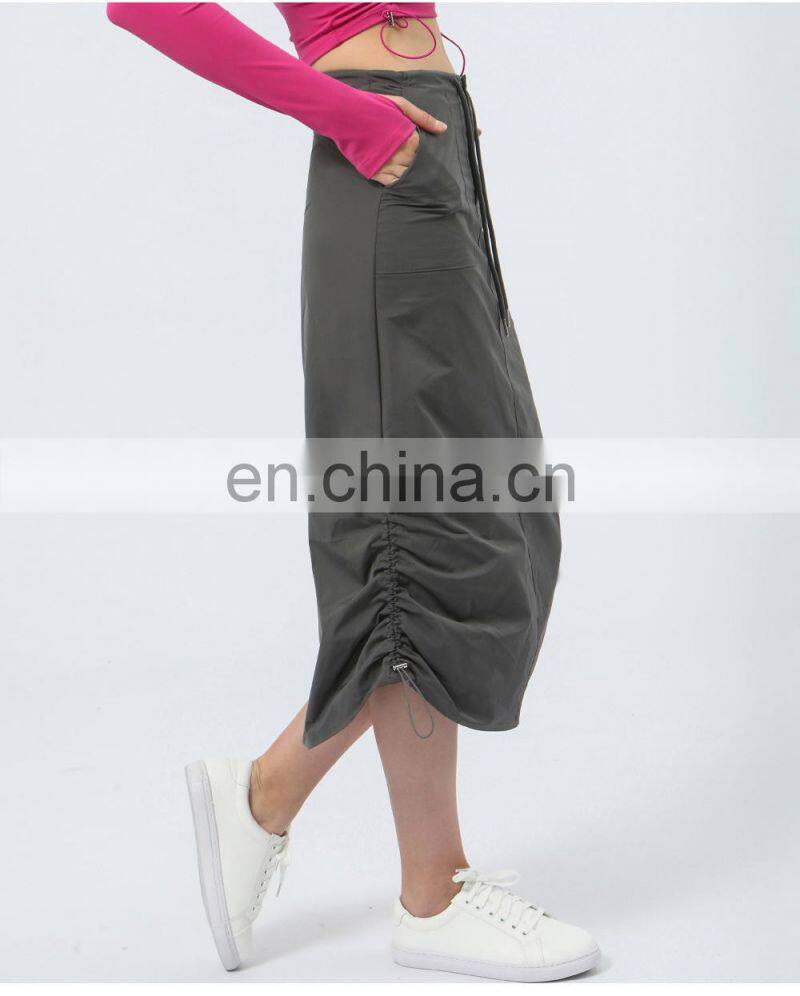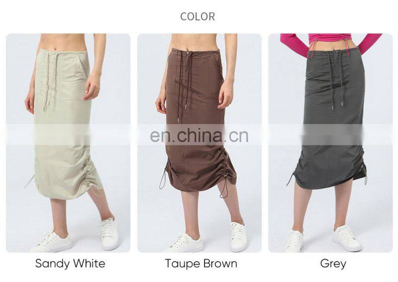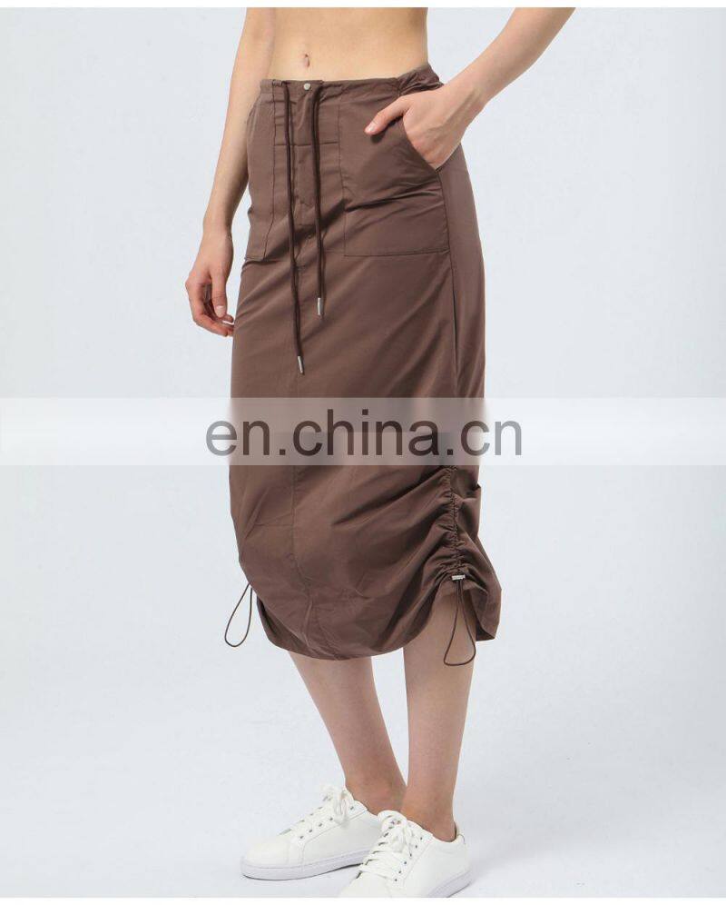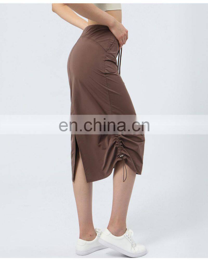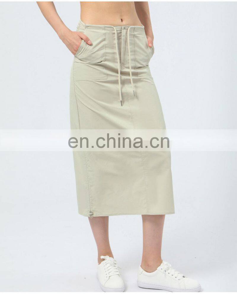 Custom Logo Women Workout Clothing Split A-line Lift Hip Casual Half-body Cargo Dress Gym Fitness Wear Yoga Skirt Sports Dress