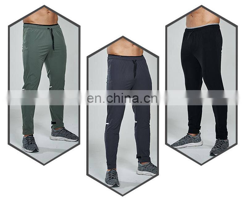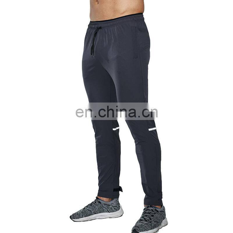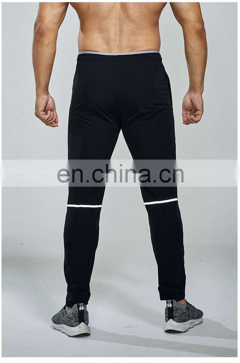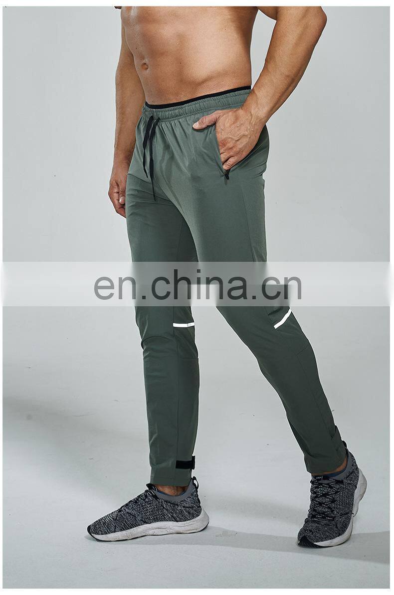 Quick Dry Elastic Drawstring Waist Sports Gym Pants With Zip Side Pocket Reflective Stripe Men's Workout Training Jogging Wear
