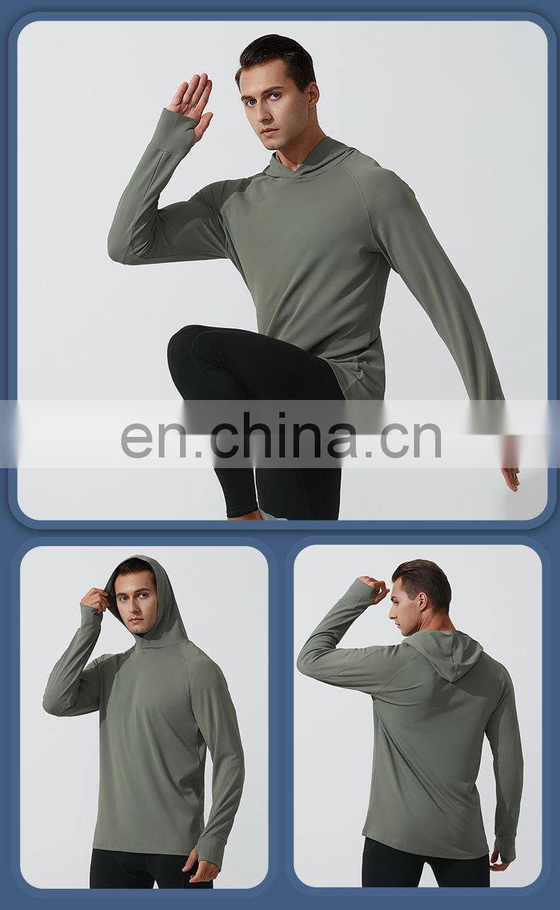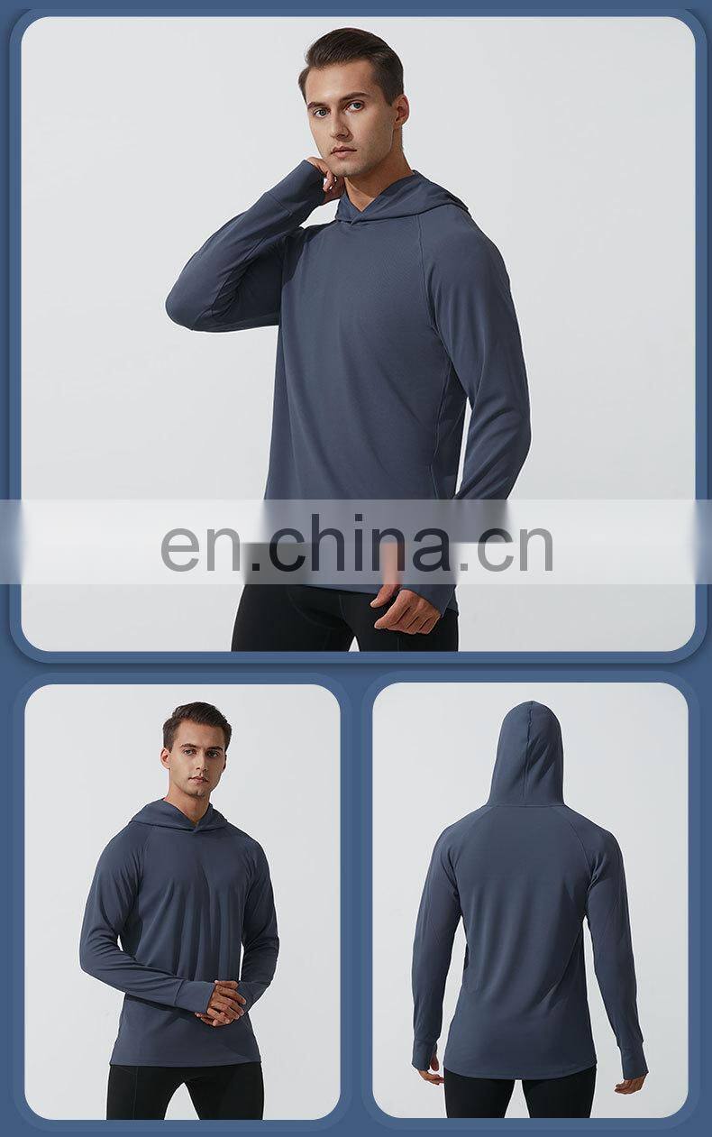 Hot Selling Men's Casual Jogging Sports Hoodie Thumb Hole Quick Dry Long Sleeve Workout Fitness Pullover Gym Shirt Clothes