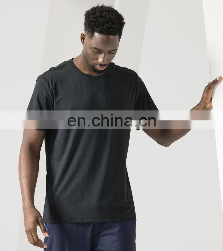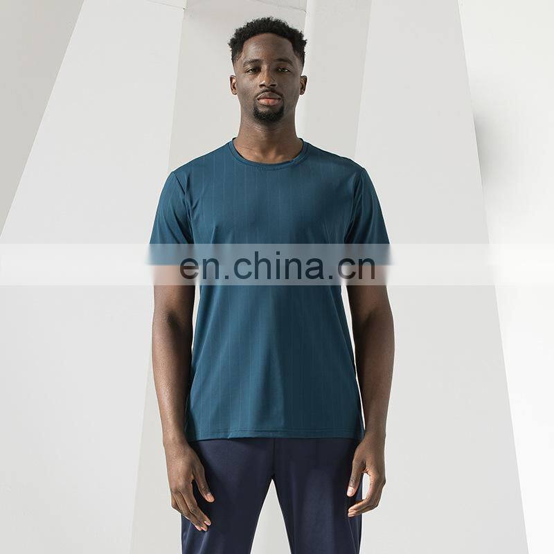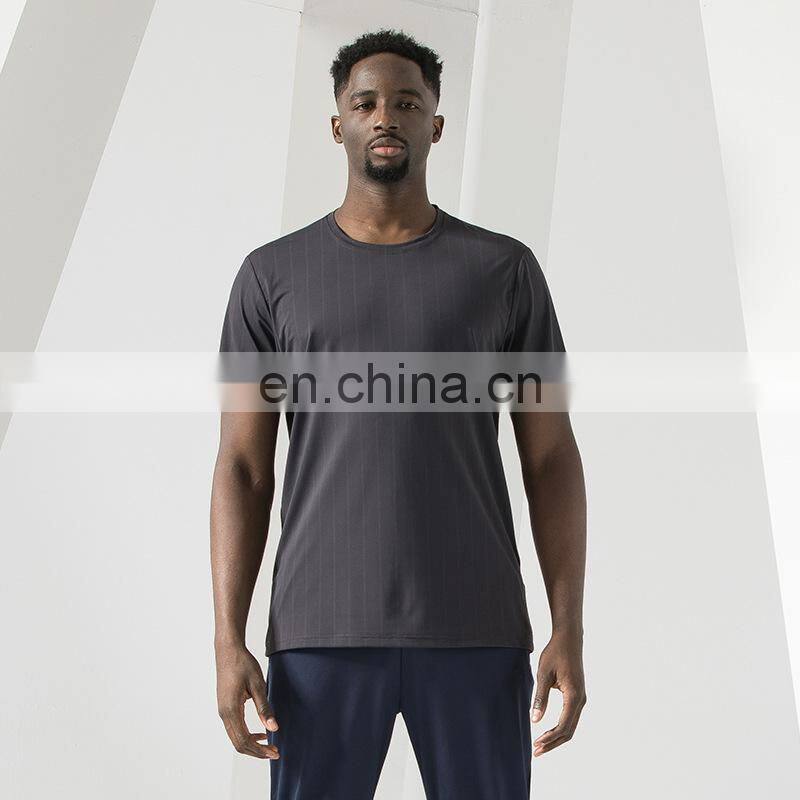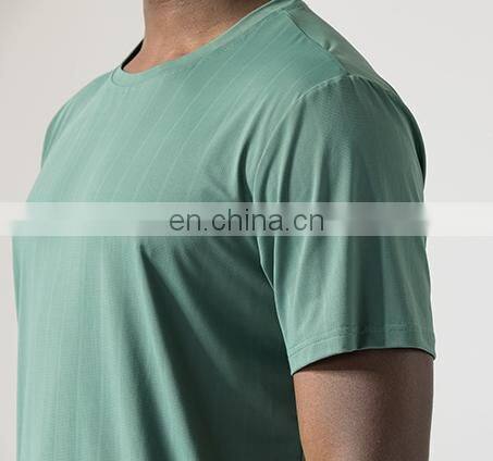 2023 New Wholesale Ice Silk Lightweight Gym Fitness Shirt Top Quick Dry Stripe Print Slim Fit Workout Sports T-Shirt For Men