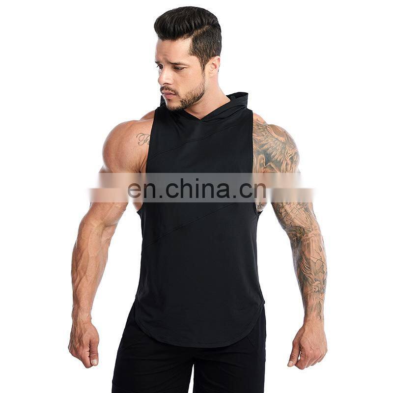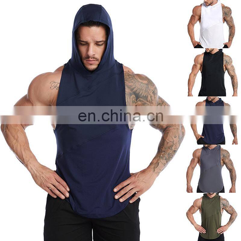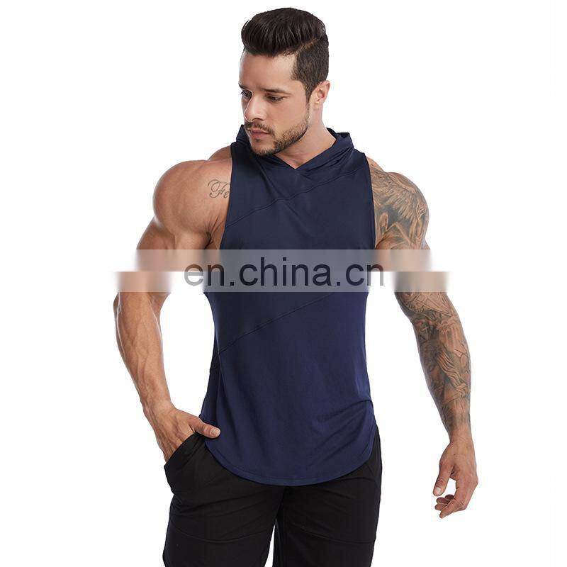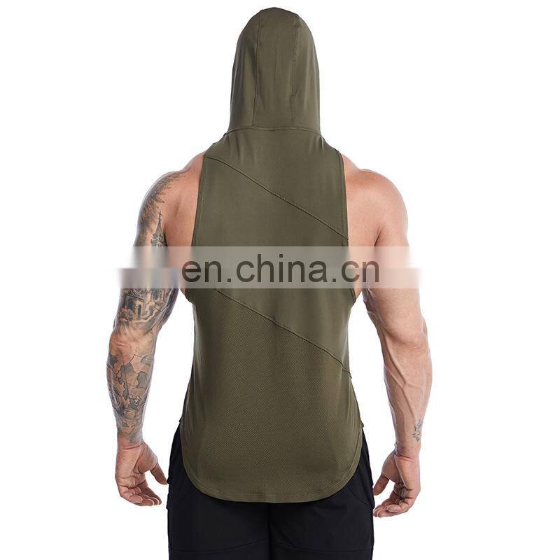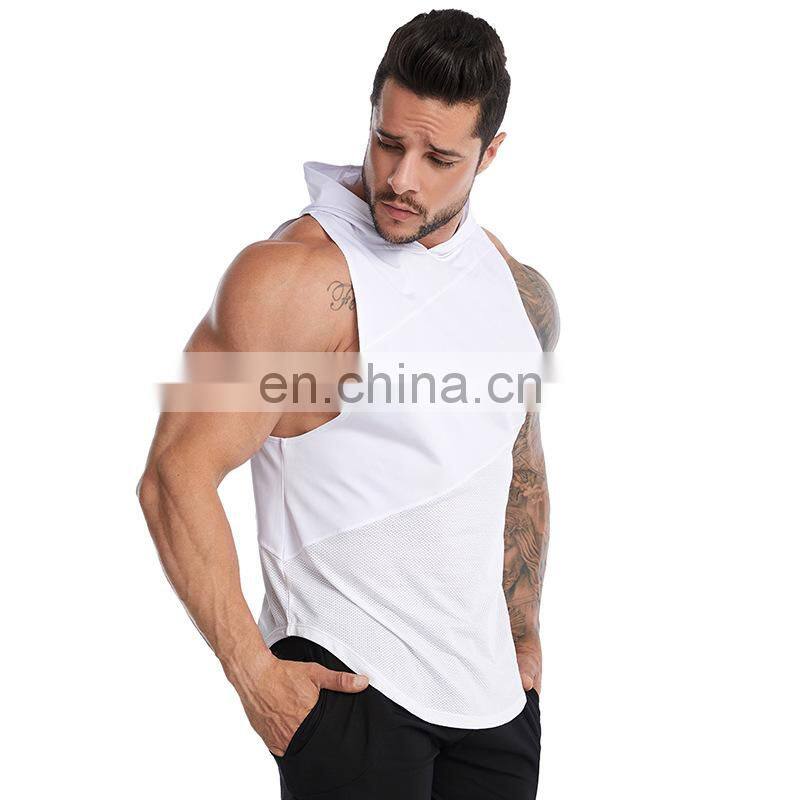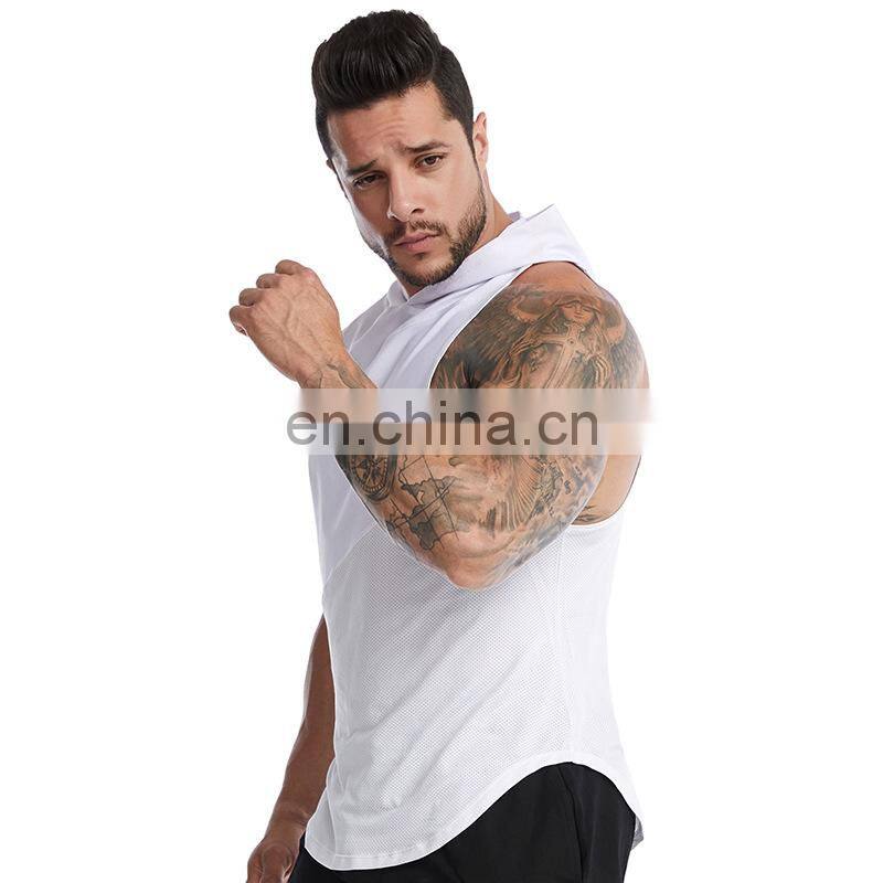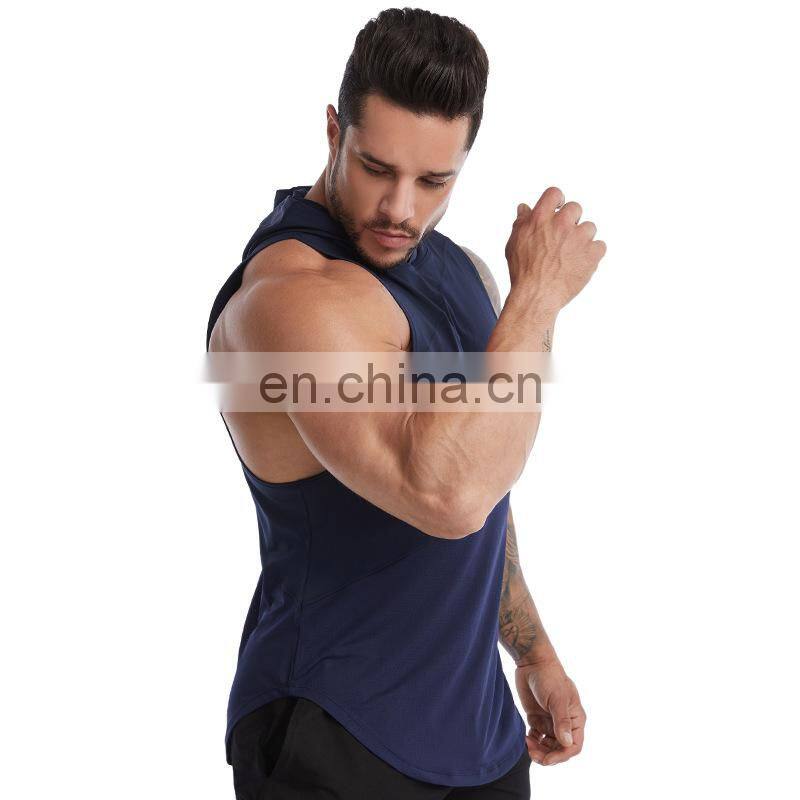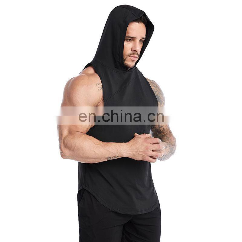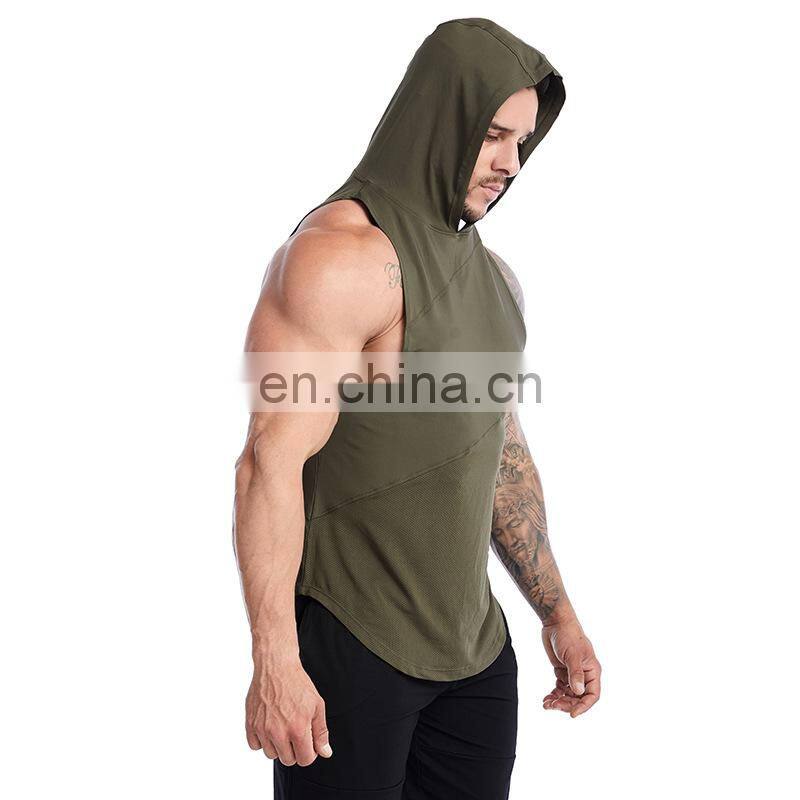 High Quality Men's Quick Dry Workout Sleeveless Hoodie Shirts Gym Fitness Bodybuilding Outdoor Sports Muscle Hooded Tank Tops