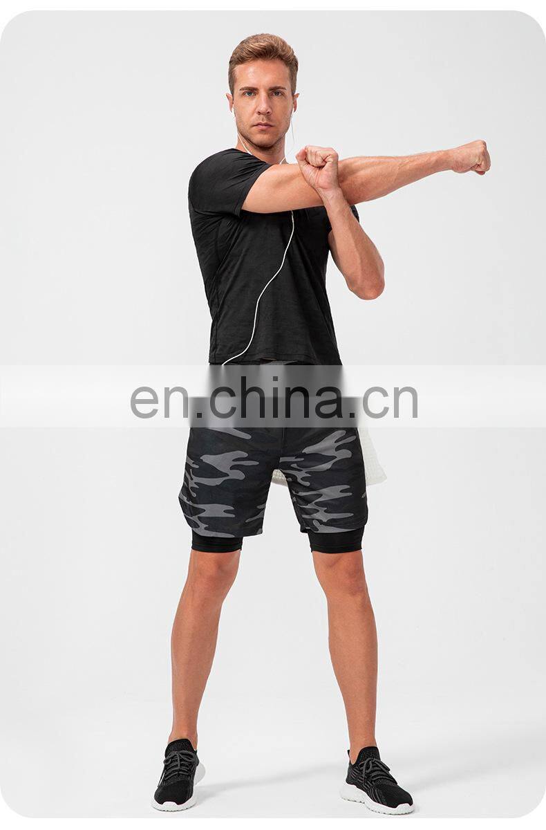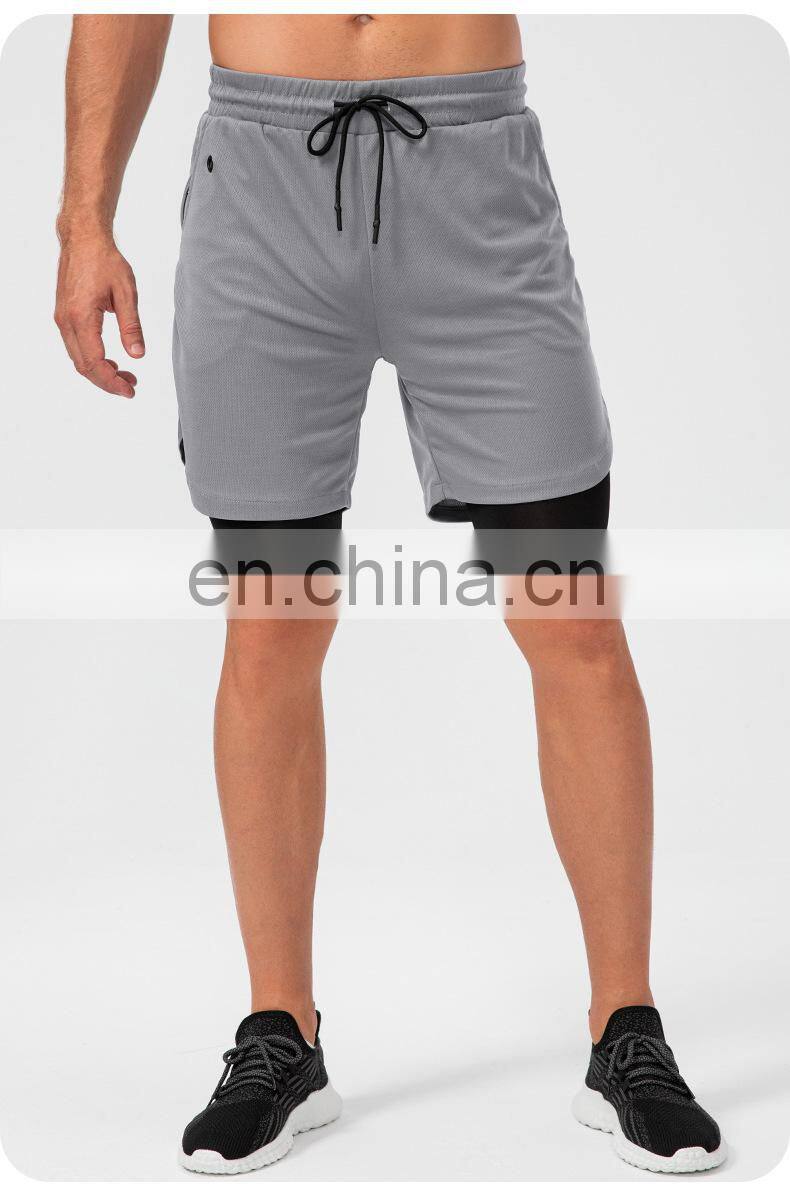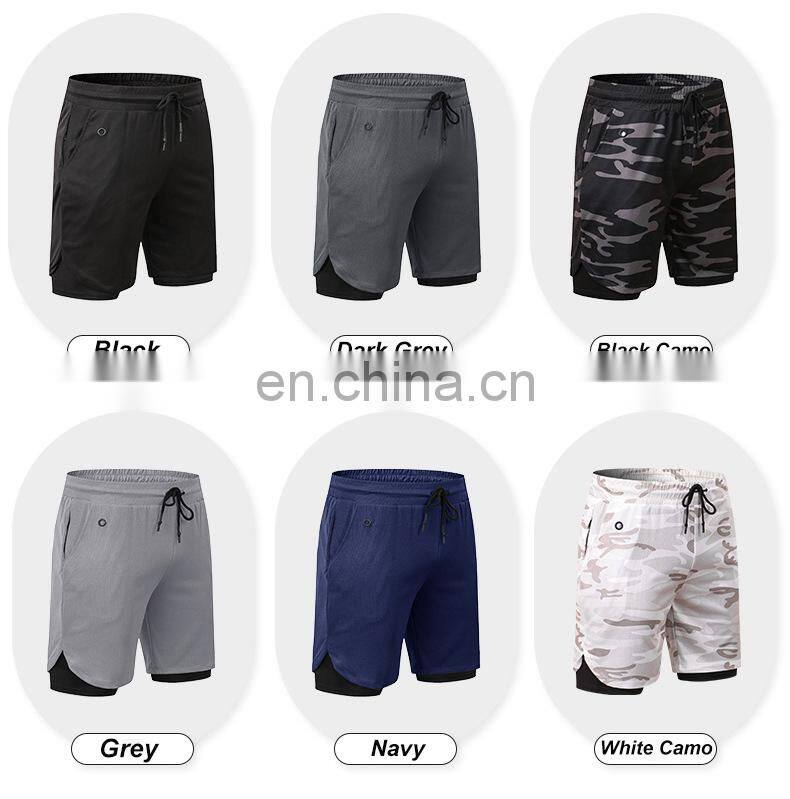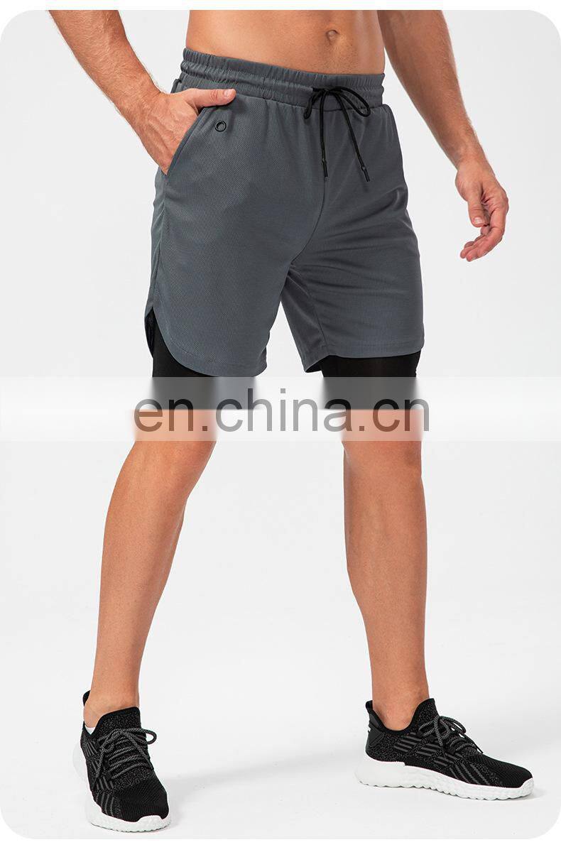 Custom Logo Quick Dry Sports Shorts Workout Running Two In One Training Gym Shorts With Pockets Short Pants For Men