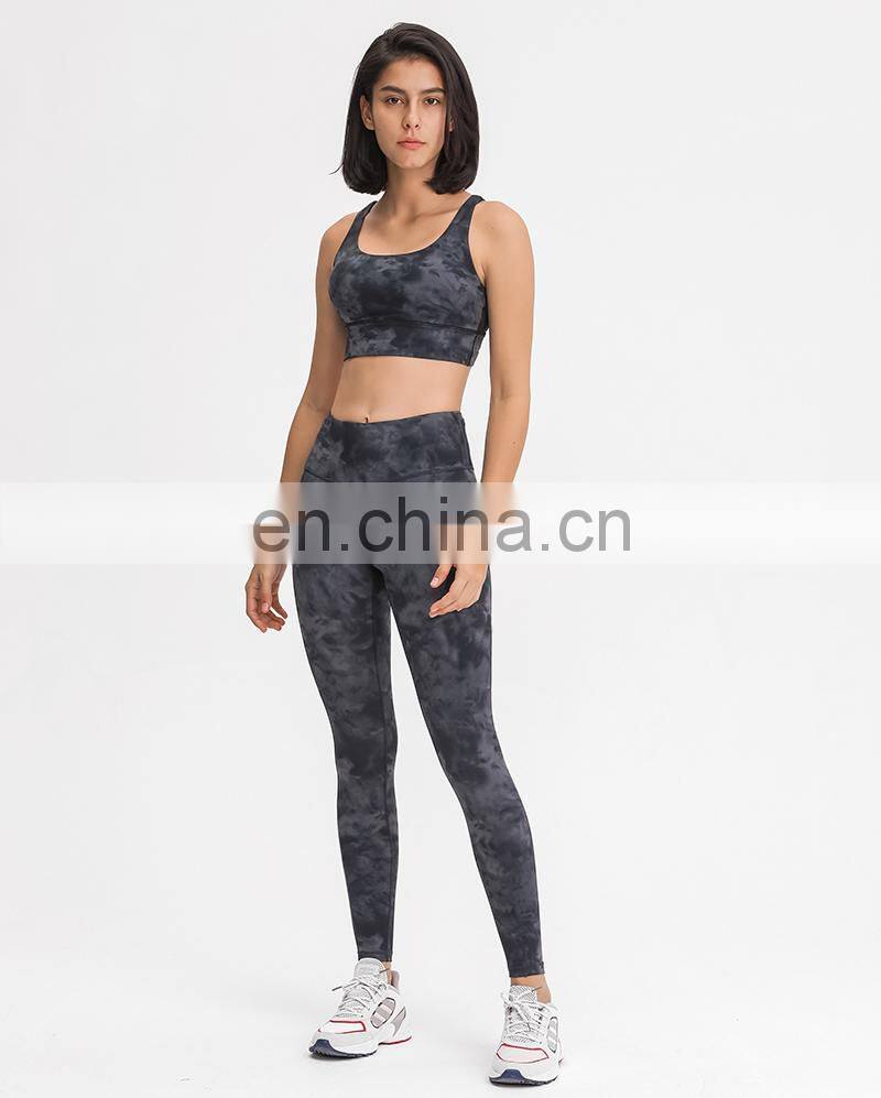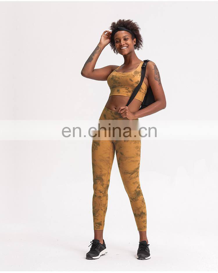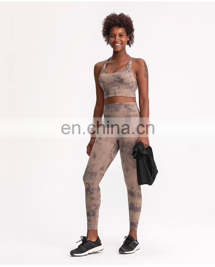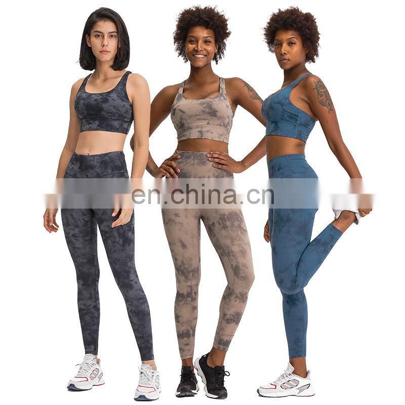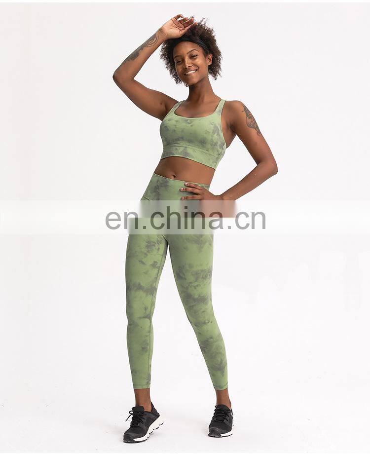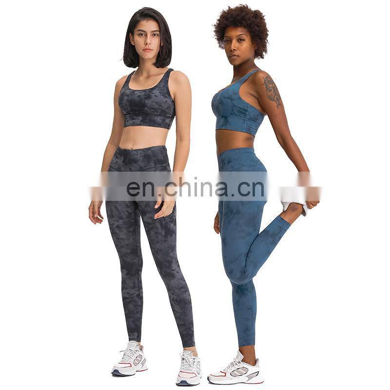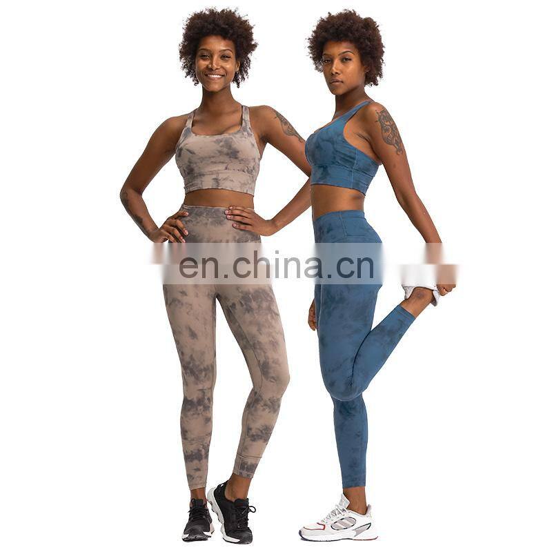 Customized Two Piece Tie Dye Leggings Match Sports Bra Yoga Sets Hight Quality Women Workout Gym Wear