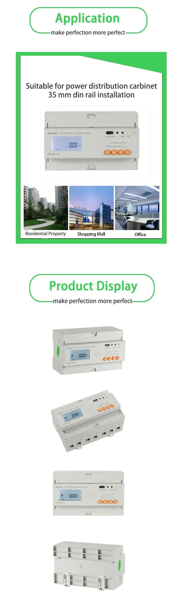 ADL100-EY single-phase pre-paid meters with intro-control, and ADL300-EY three-phase pre-paid meters with intro-control are used for calculating the single and three-phase active energy respectively on the frequency of 50/60 Hz The meter has functions of pre-paid, load controlling and RS485 communication, etc. meet the related technical requirements of electronic power meter in the IEC62053-21, IEC62053-22 standards.