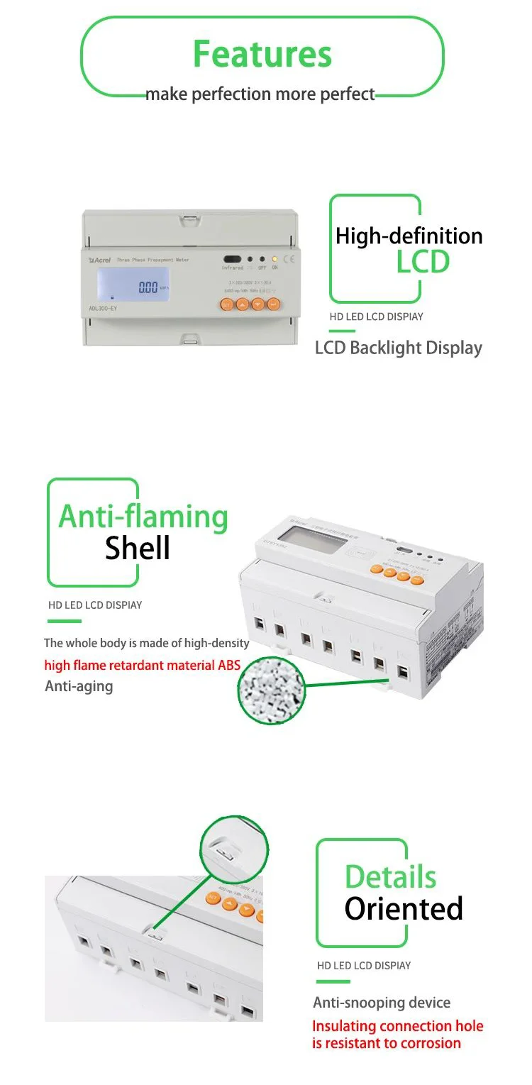 ADL300-EY 3 Phase 8 Digits LCD Display China Smart Prepayment Meter Top Up Tariffs Electronic Measuring Instruments