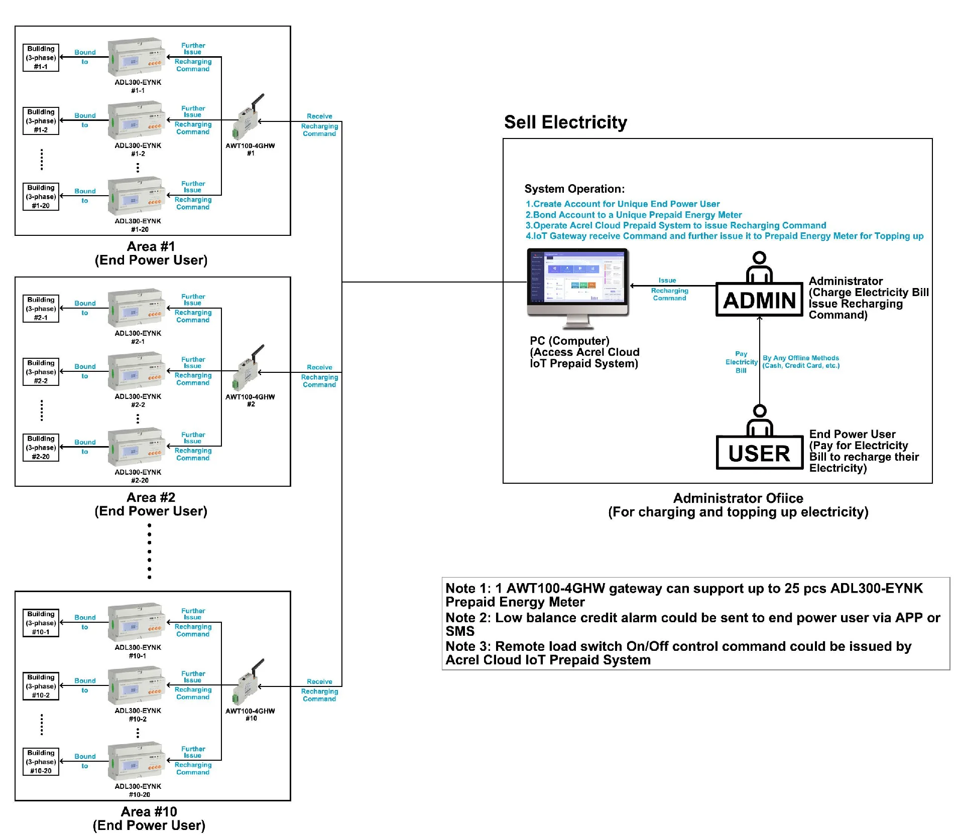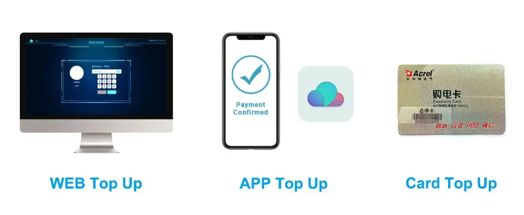 Local&Online Topping Up ● Topping up by RFID Card (Local) ● Topping up by Mobile APP (Online) ● Topping up by Prepaid System (Online) ● Low Balance Credit Alarm by sending SMS | |