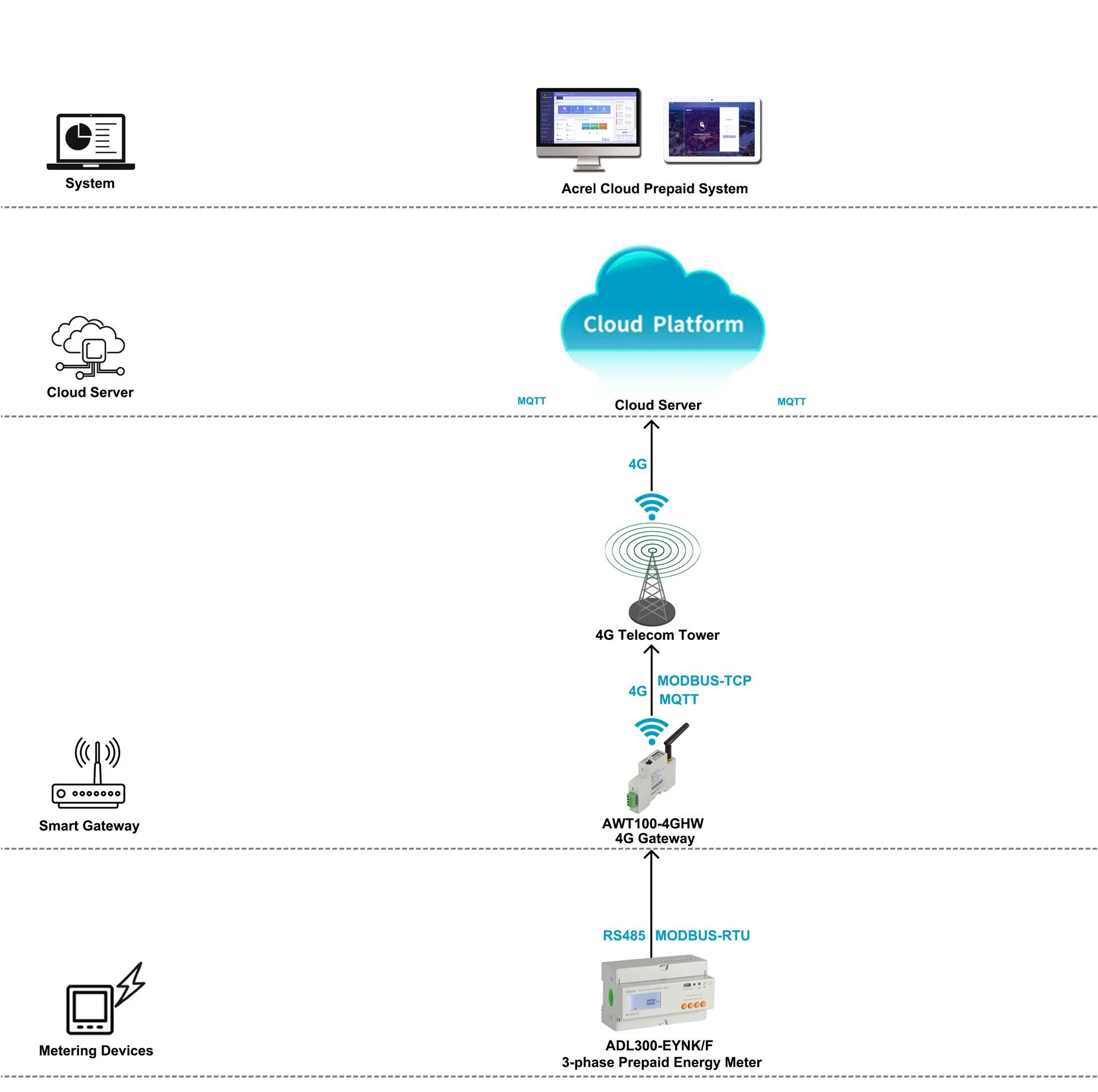 Acrel ADL300-EY Smart Prepaid Electricity Meter With RS485 Din Rail Installation IoT Cloud Platform