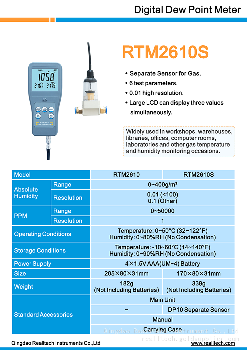 RTM2610S Gas Dew Point Temperature Meter Digital Absolute Humidity Measuring Instrument