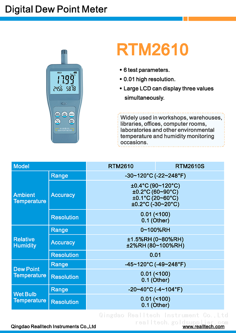 RTM-2610 Dew Point Temperature and Humidity Meter With 0.01 ResolutionUS$ 155 - 193MOQ: 1 Piece