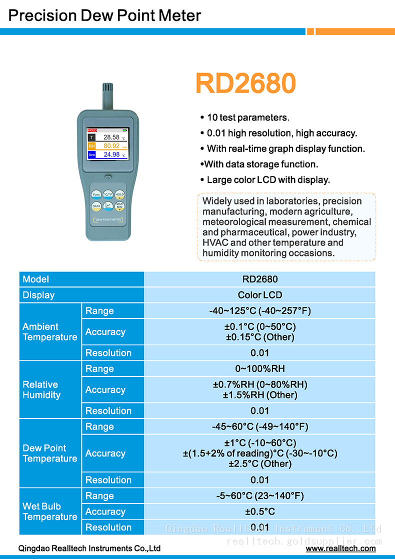 RD2680 Precision Enviromental Dew Point Meter Can Measure 10 Parameters