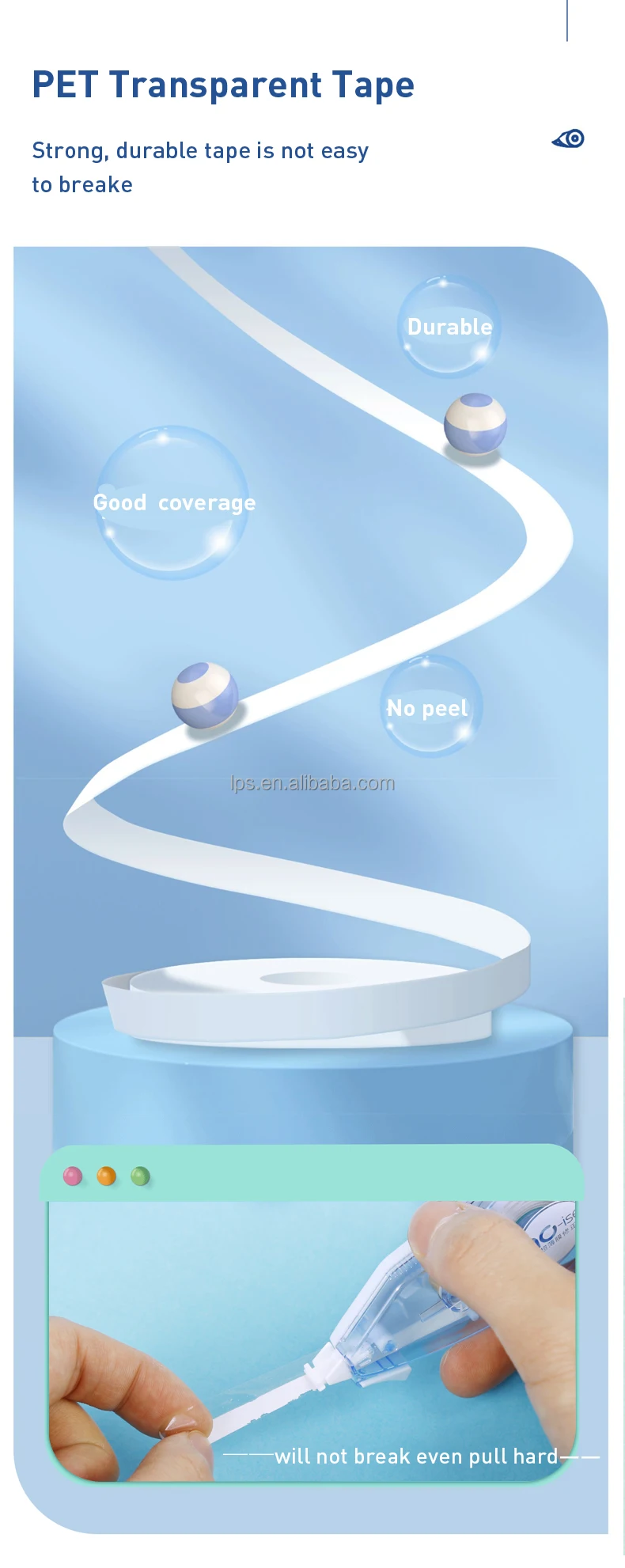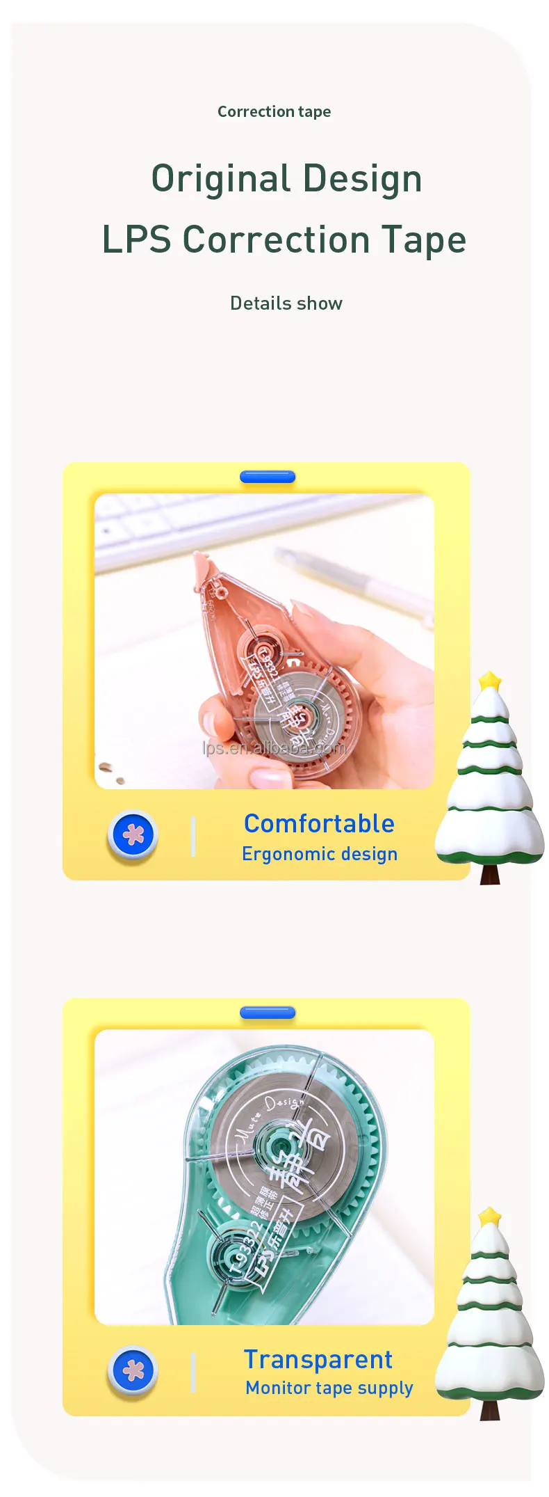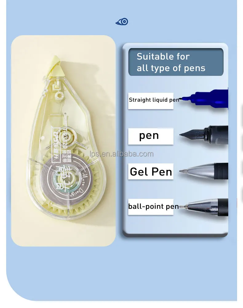 - Customized 20m New Design Creative Plastic Correction Tape PET Clear Film School and Office Supplies Correction Roller