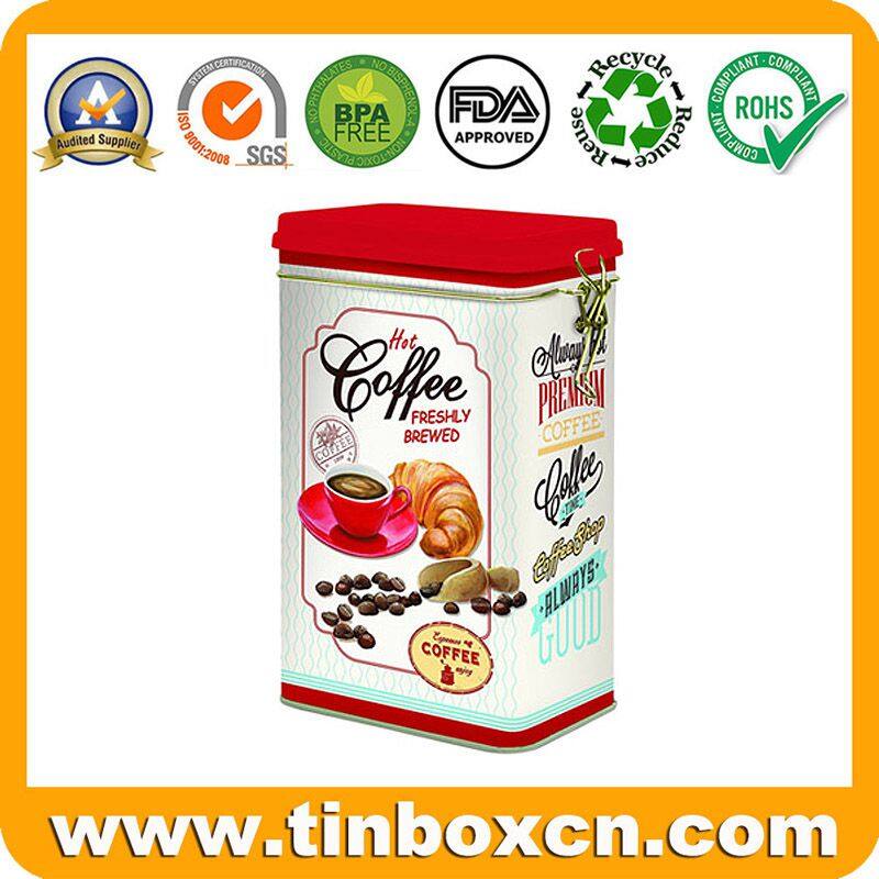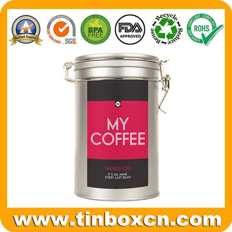 Stylish Coffee Tin Can with Airtight Lid and Metallic Closure Mechanism