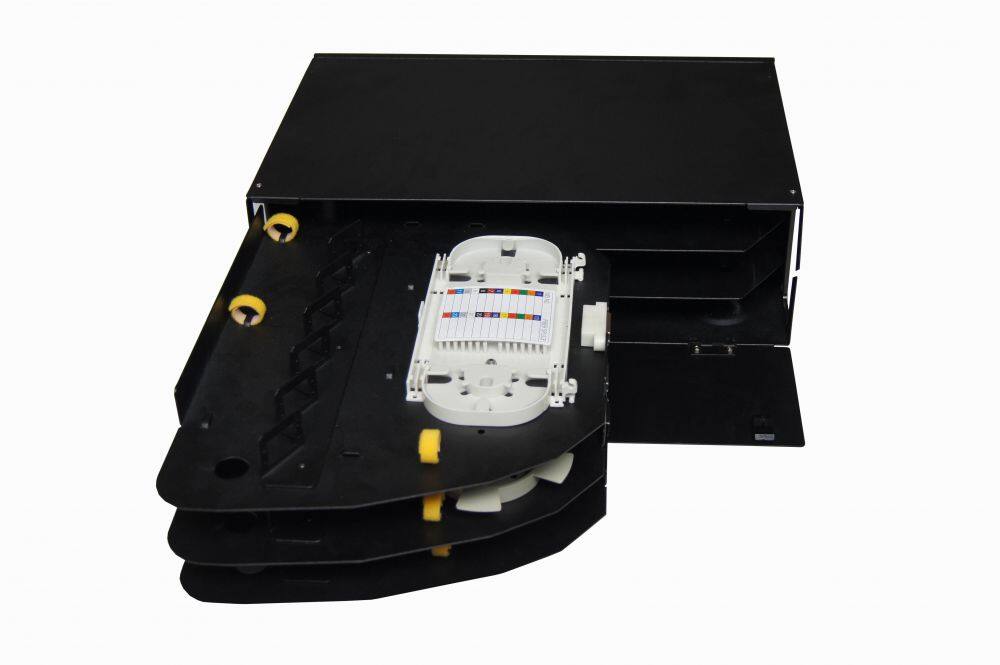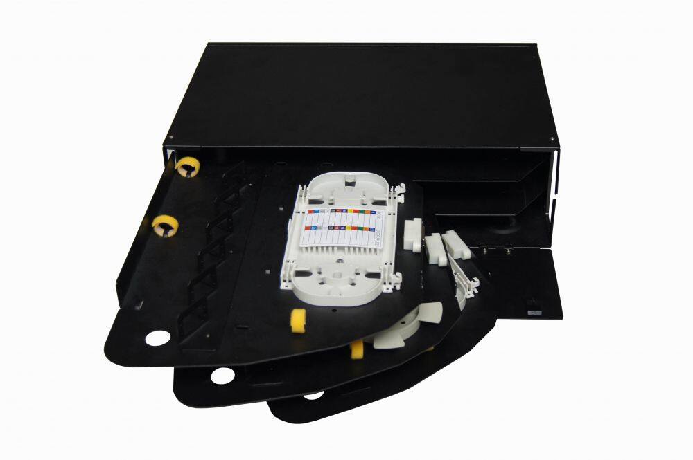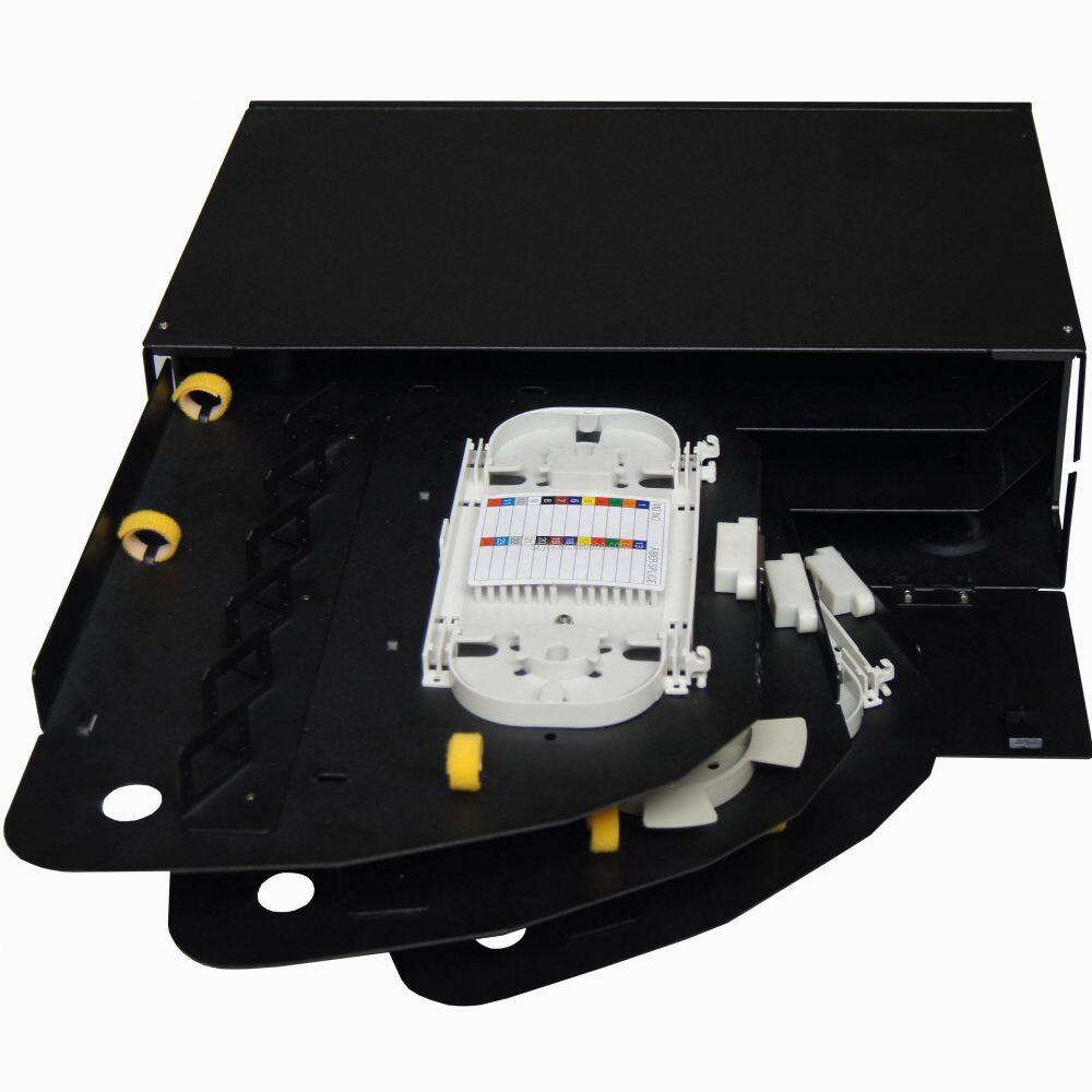 Fiber optic patch panel is modulized design with drawable trays inside and cold-rolled steel box. It could be pre-installed with various kinds of fiber optic adapters and pigtails. It is ideal for indoor fiber optic cables connection storage, distribution and management.