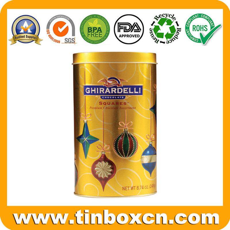 Christmas Oval Chocolate Tin Can Tin Box With Embossing and Metallic Printing Effect